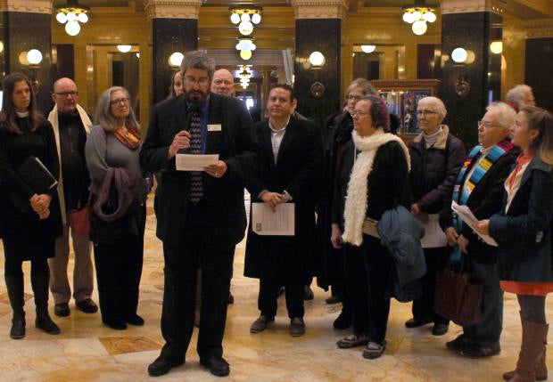 On Monday, more than a dozen such leaders from around the state gathered in the Capitol rotunda to voice their disapproval of Walker’s position.