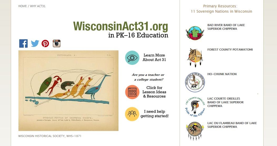 In a survey last year, more than two-thirds of the state’s teachers said they didn’t have the proper resources to teach their students about Wisconsin’s tribes. WisconsinAct31.org has been created to fill that gap.