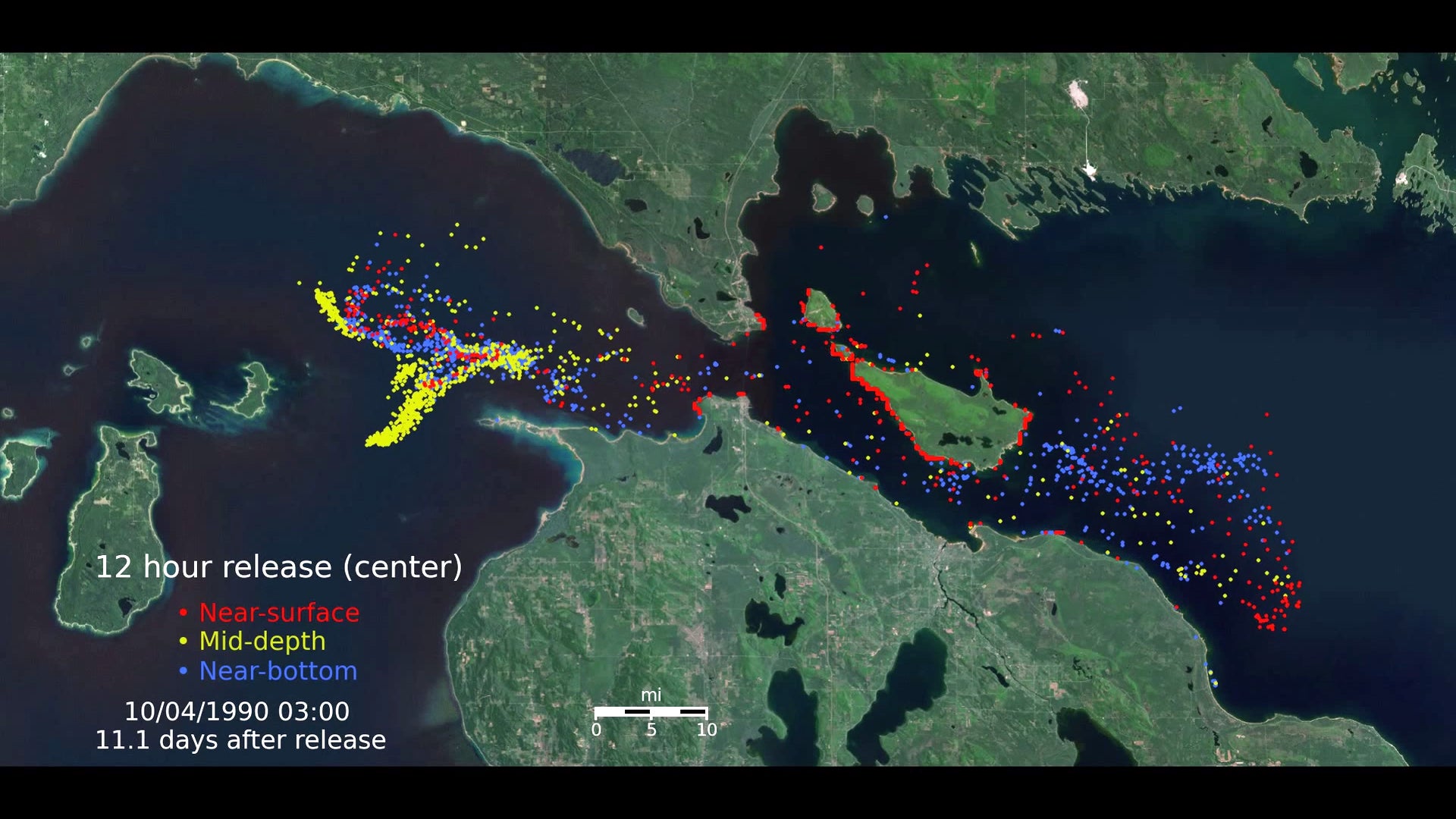 During a conference call set up by the National Wildlife Federation, scientist David Schwab said the water flow in the straits is large and can go east or west.