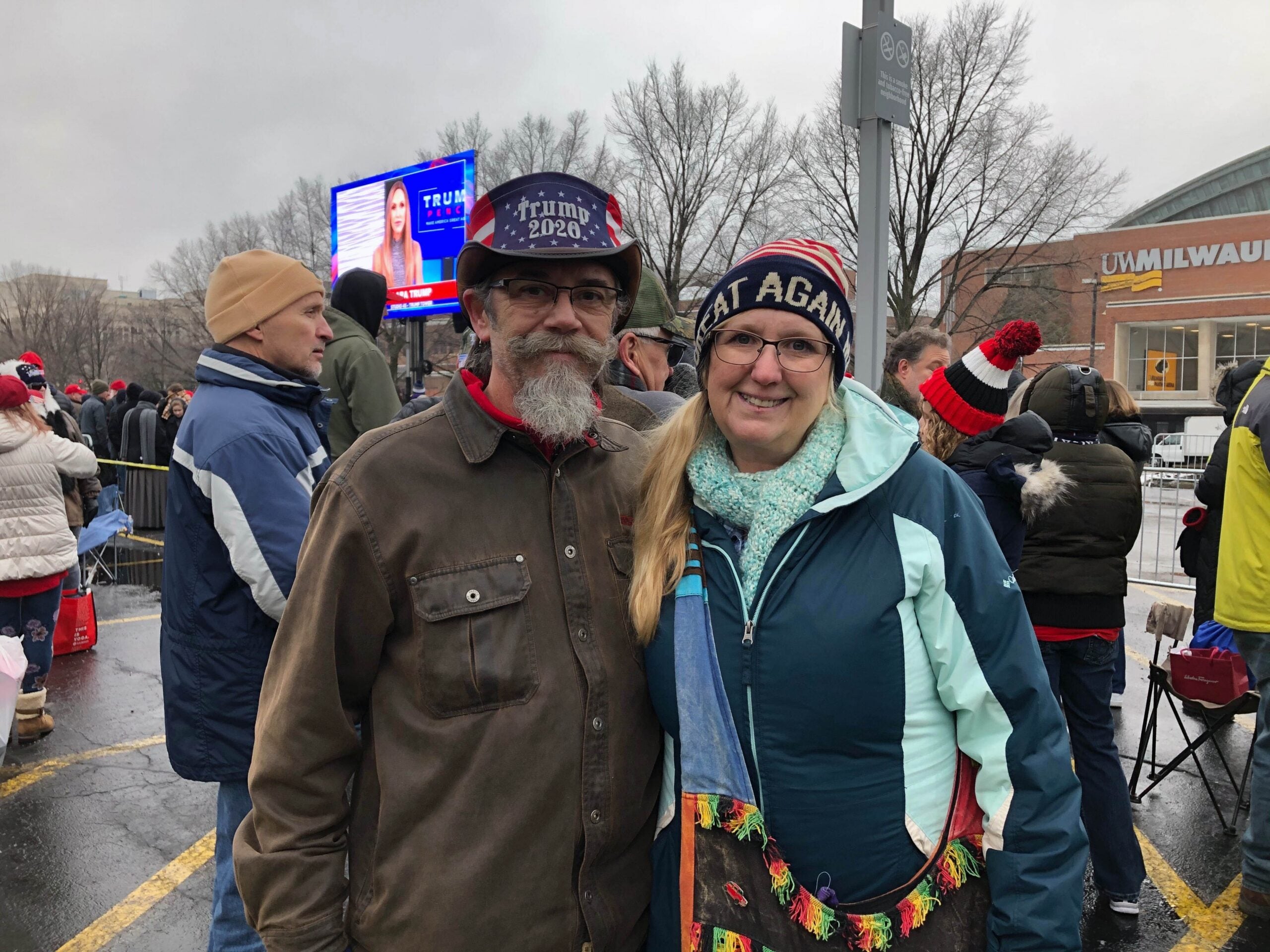 Craig and Donna Minkley from Kenosha County were also in line around 10 a.m. Tuesday. They are hoping to sit as close to Trump as they can.
