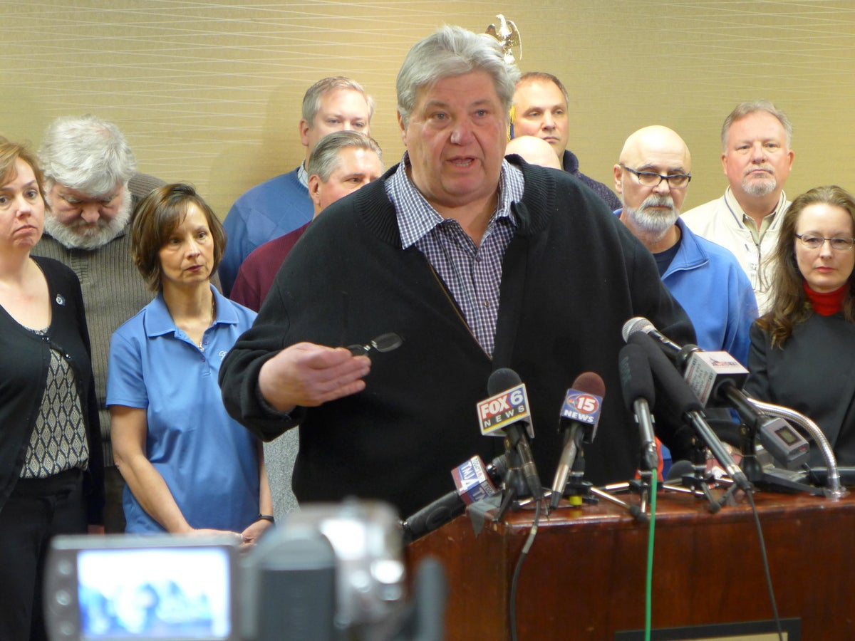 Leaders from private- and public-sector unions held a Madison press conference Monday to blast the Republican plan to make Wisconsin the nation’s 25th right-to-work state. Such laws ban mandatory union dues at private-sector businesses.