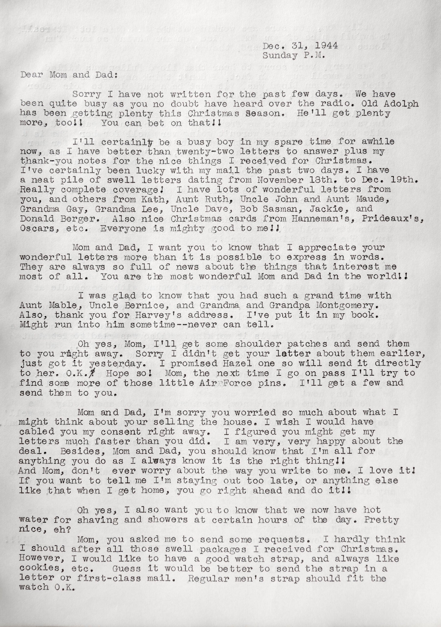 The last letter he wrote to his parents was on Sept. 18, 1945, a few weeks after the official end of the war.