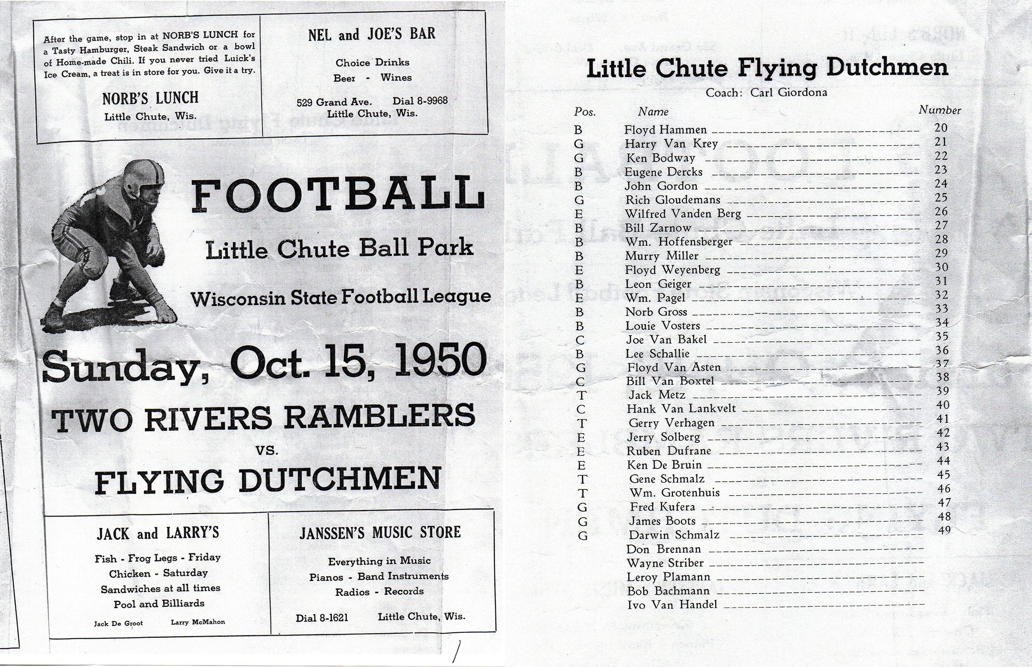 A program from a Oct. 15, 1950 Little Chute Flying Dutchmen game