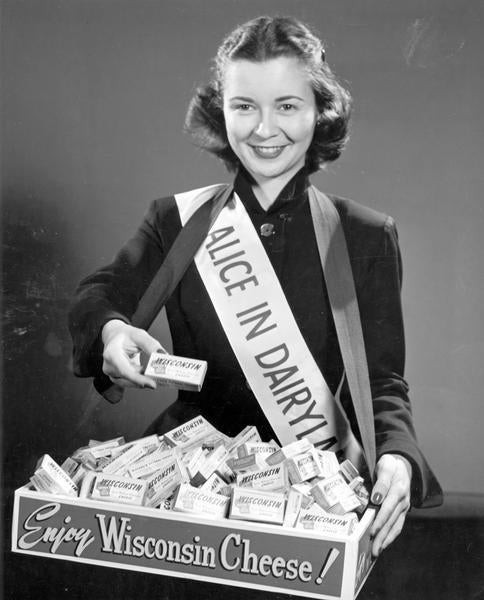 She got her start in 1948 at the Wisconsin Centennial Exposition (she was preceded by the “Dairy Queen”). Margaret McGuire-Blott, pictured above, had the honor of being the first Alice.