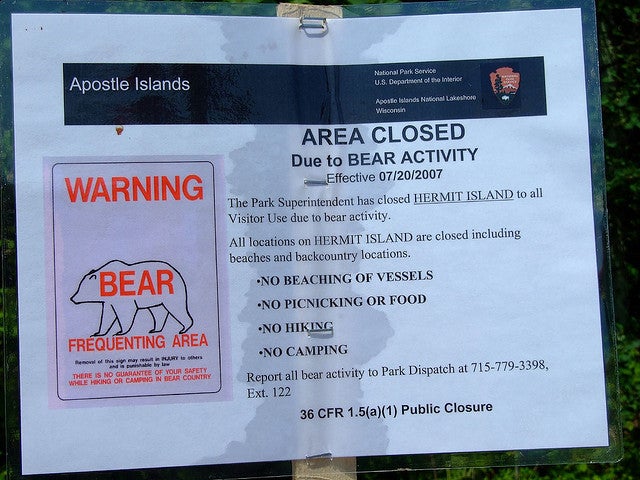 Oak Island has the most bears of any of the Apostles, with about half of the 40 or so in the 21-island group. Apostle Islands resources manager Julie Van Stappen said they closed the dock area two weeks ago because of a hungry old bruin that had reportedly been poking its nose around places it shouldn’t have been.