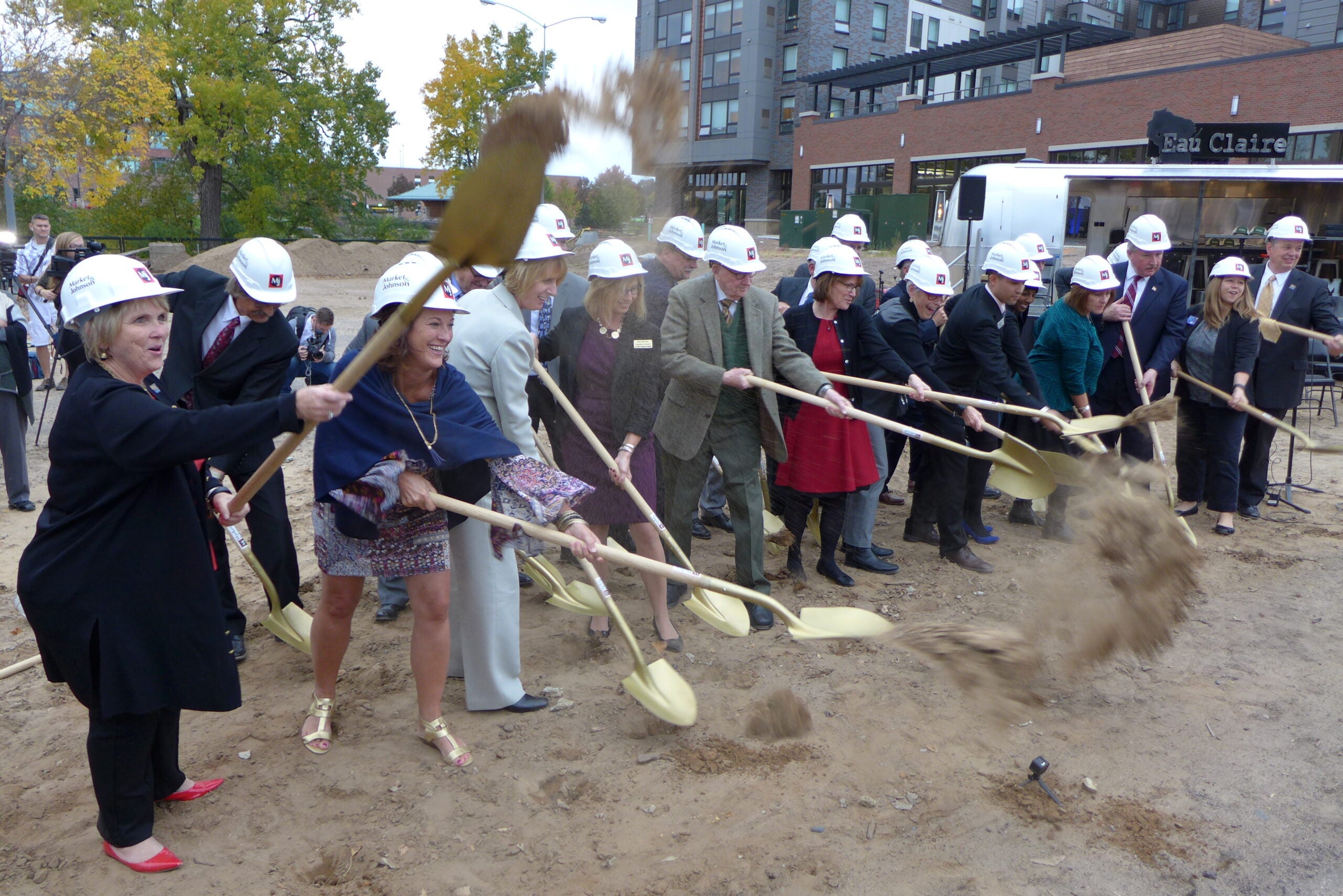 In the past two years, Eau Claire has seen an upswing in downtown development in anticipation of the performing arts space including the redevelopment of two landmark hotels in the city’s center. Local artist Mel Sundby said seeing the shovels turn capped off a hard fought battle for the Chippwa Valley arts community.