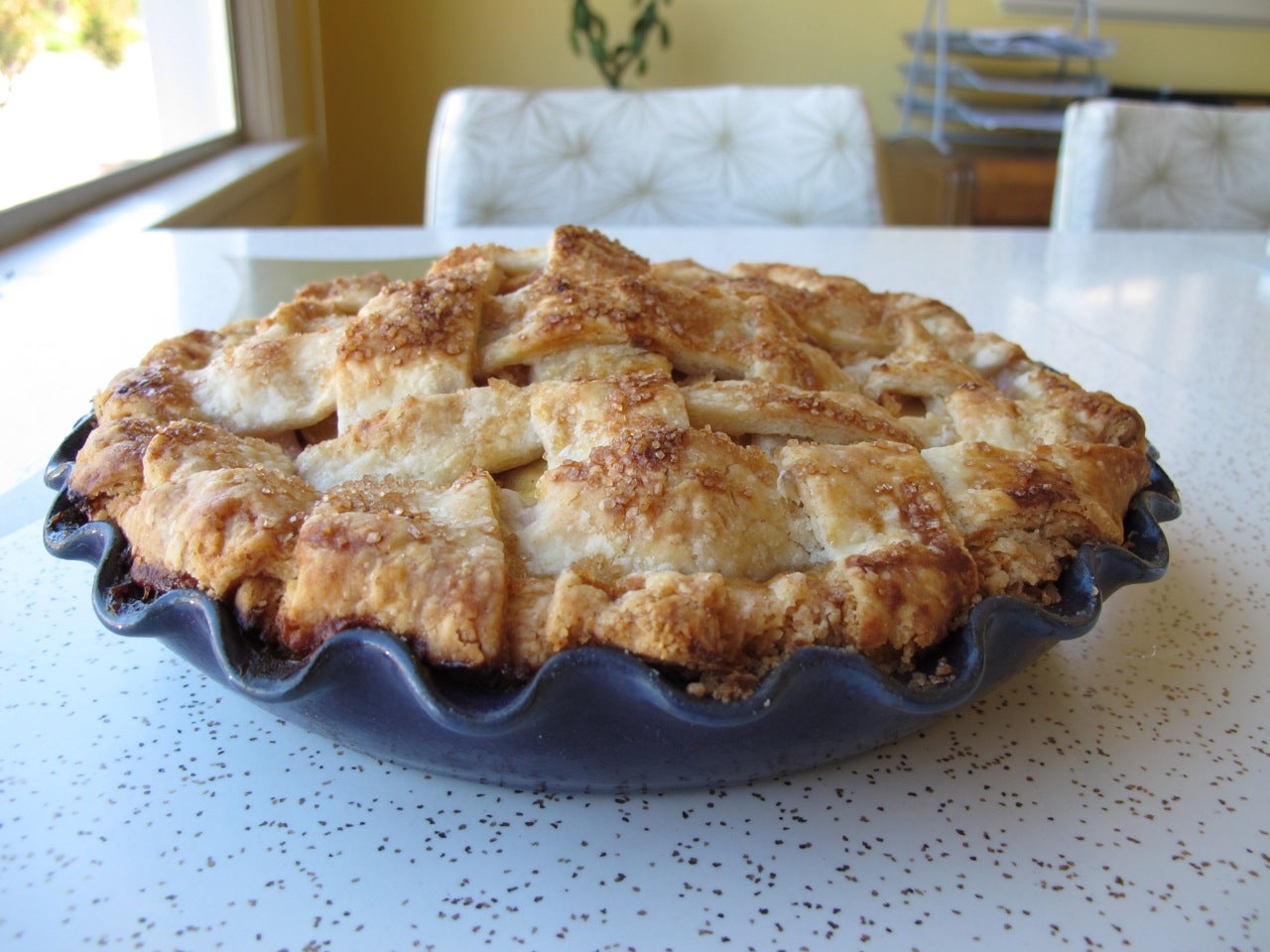 Bake on 425 degrees for 10 to 15 minutes until the crust is blistered and blond. Rotate the pie 180 degrees to assure even baking, then lower the temperature to 375 degrees and bake for another 50 to 60 minutes until the crust is golden and the juices start to bubble slowly at the edge — possibly longer if you’ve used frozen fruit.