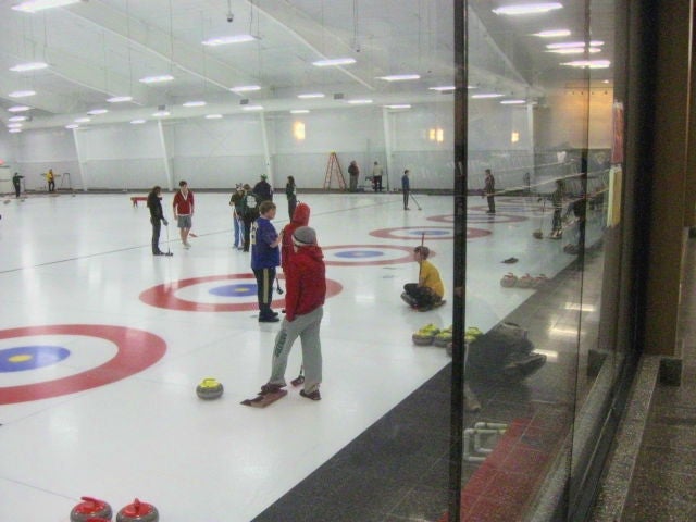 The building covers an acre of ground. More than 12 miles of plastic piping carry refrigerants under the ice. There is an observation area with seating, a big co-ed locker room, and even wheelchair access for handicapped players. Stubbe says you won’t see any hockey played here. “Curling takes a very unique kind of ice to have world class ice. It’s all set up for curling, it’s totally designed for curling, and as you can see it’s a busy place.”
