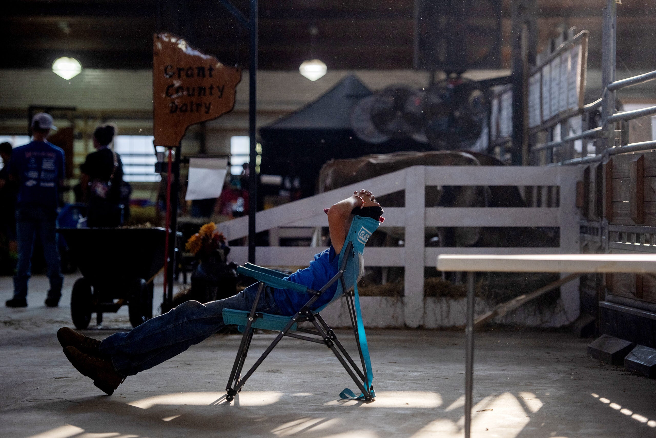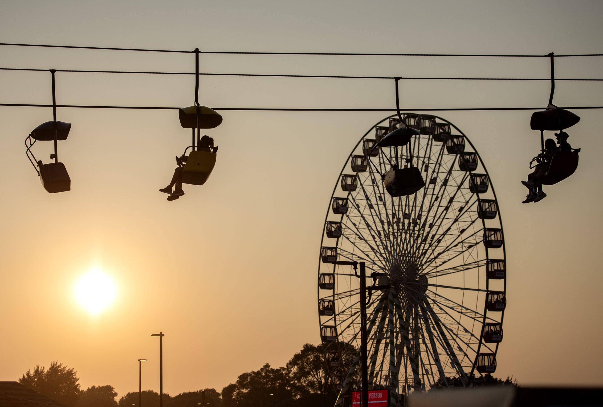 Eight-year-old Trey Stone and his mother, Melissa, right, wave at people they recognize in the sky glider Friday, Aug. 2, 2024, during the Wisconsin State Fair in West Allis, Wis. Angela Major/WPRWisconsin State Fair attendees dance to live music Friday, Aug. 2, 2024, in West Allis, Wis. Angela Major/WPRA crowd of people walk to different attractions at the Wisconsin State Fair on Friday, Aug. 2, 2024, in West Allis, Wis. Angela Major/WPREight-year-old Michael Glubka jumps on a trampoline ride during the Wisconsin State Fair on Friday, Aug. 2, 2024, in West Allis, Wis. Angela Major/WPRA pianist performs a cover of “Africa” by Toto as attendees listen Friday, Aug. 2, 2024, during the Wisconsin State Fair in West Allis, Wis. Angela Major/WPRA boy takes a rest as people stop by the barn to look at cows Friday, Aug. 2, 2024, during the Wisconsin State Fair in West Allis, Wis. Angela Major/WPREmily Christiansen and her 2-year-old son James take a look at cows Friday, Aug. 2, 2024, at the Wisconsin State Fair in West Allis, Wis. Angela Major/WPRCows take a nap during the Wisconsin State Fair on Friday, Aug. 2, 2024, in West Allis, Wis. Angela Major/WPRPayton Calvert of Cuba City, Wis., trims a cow’s ears Friday, Aug. 2, 2024, during the Wisconsin State Fair in West Allis, Wis. Angela Major/WPRA sheep rests while in a pin Friday, Aug. 2, 2024, during the Wisconsin State Fair in West Allis, Wis. Angela Major/WPRAttendees enjoy evening attractions Friday, Aug. 2, 2024, at the Wisconsin State Fair in West Allis, Wis. Angela Major/WPRA band performs as Wisconsin State Fair attendees dance Friday, Aug. 2, 2024, in West Allis, Wis. Angela Major/WPRThe sun sets behind the ferris wheel and sky glider at the Wisconsin State Fair on Friday, Aug. 2, 2024, in West Allis, Wis. Angela Major/WPR