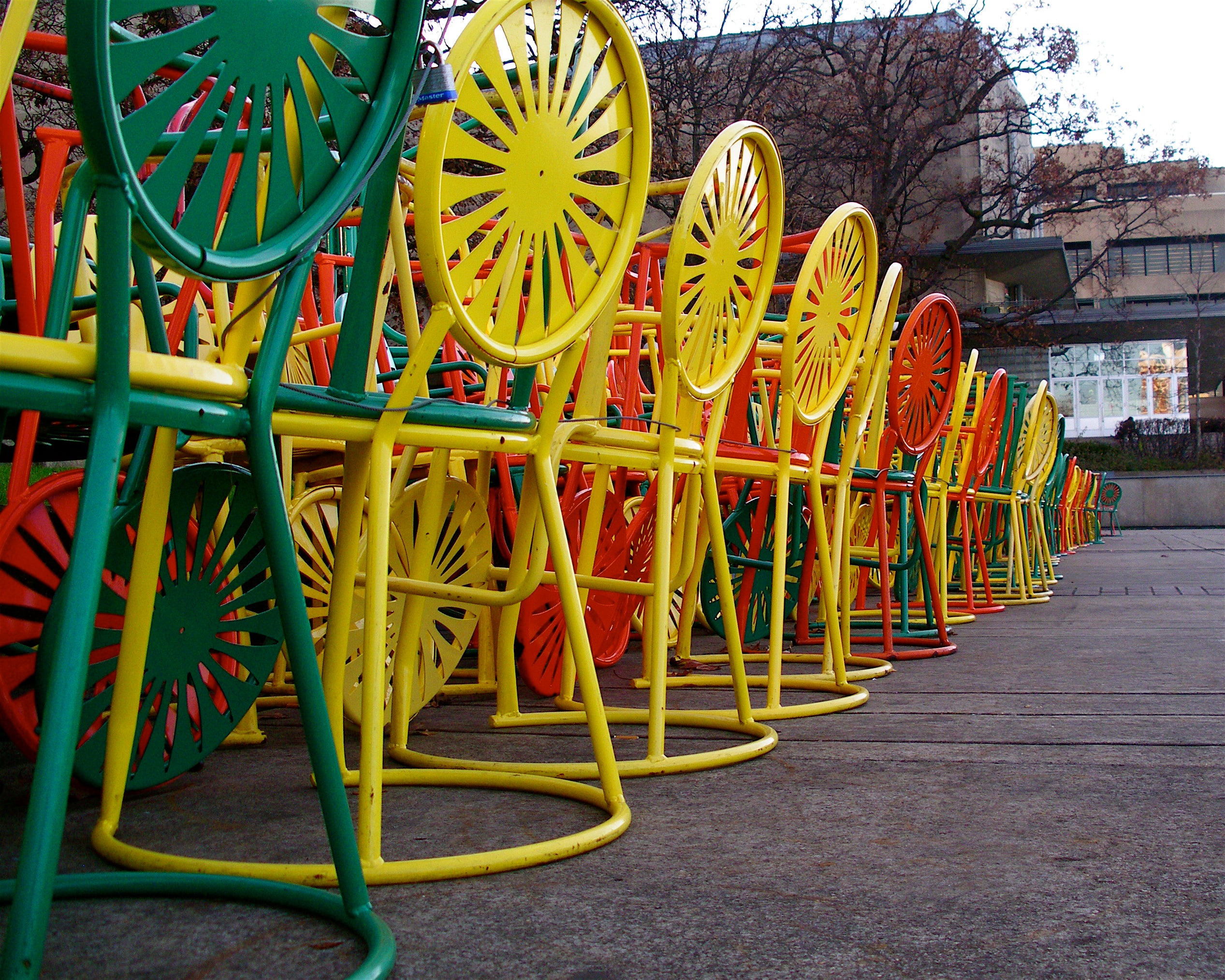 The colorful chairs are expected to reappear when construction ends in early summer 2016.