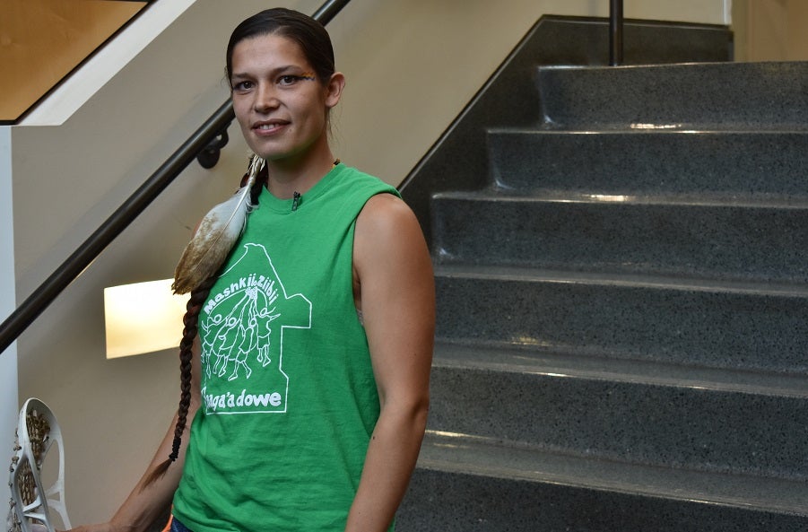 Red Cliff member Sandy Gokee said she’s a mother and water protector. Gokee said lacrosse was given to Anishinaabe people to help heal the body and spirit.