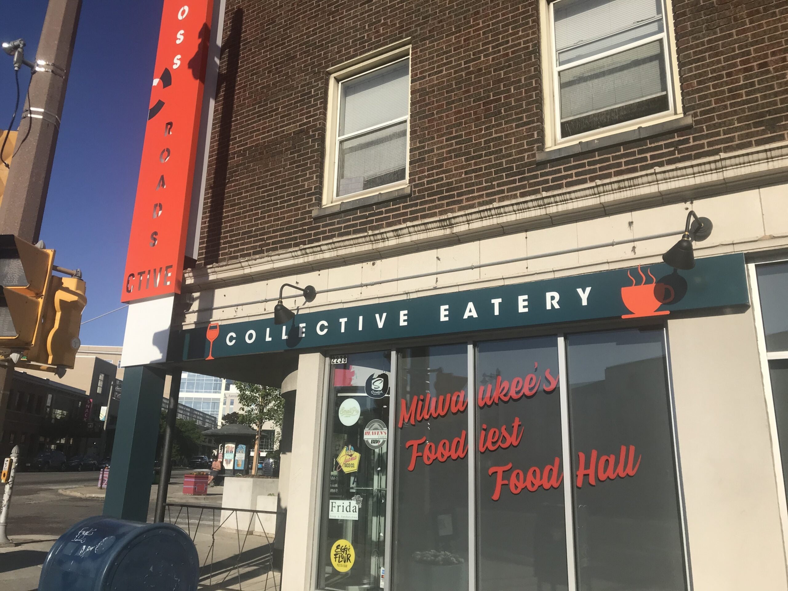 Crossroads Collective, a food hall on Milwaukee’s east side, has doubled its patio seating to draw in customers who are more skittish about the risks of COVID-19 transmission indoors. Indoor seating capacity is capped at 25 percent when the city’s bars and restaurants reopen Friday afternoon. Madeline Fox/WPR