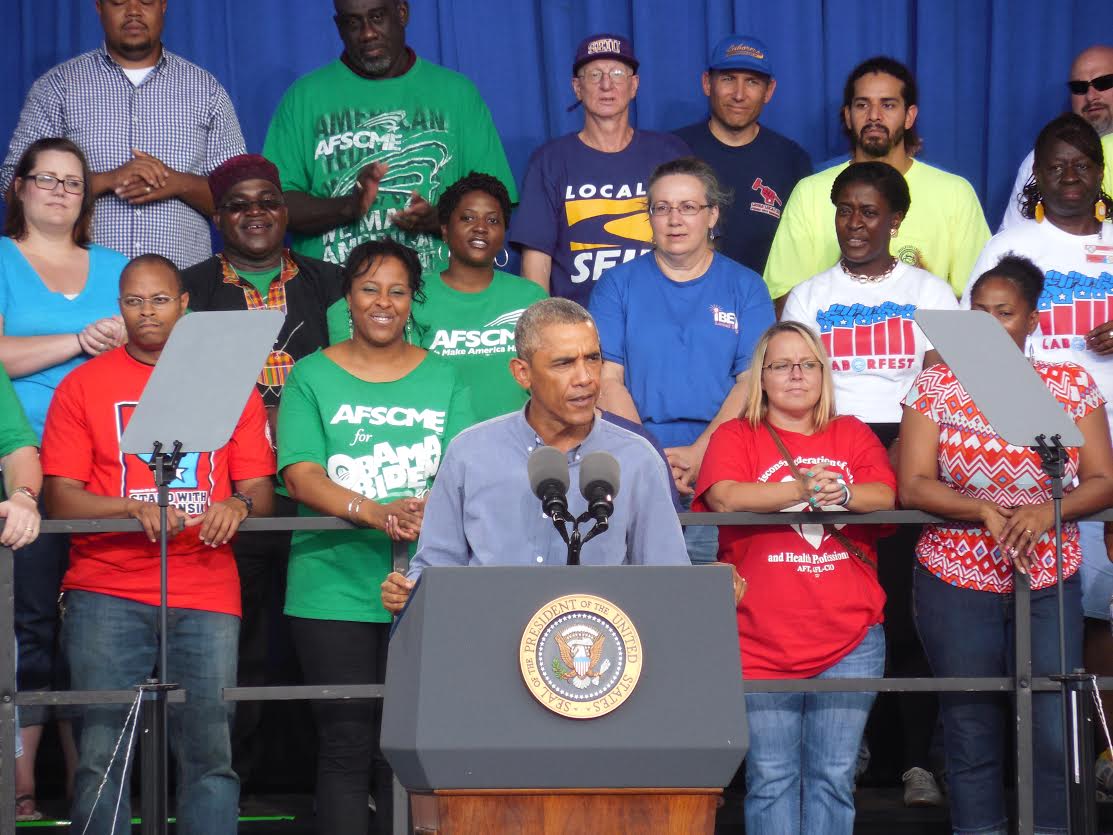 Obama told a crowd at Milwaukee’s Laborfest that unions have helped U.S. workers.
