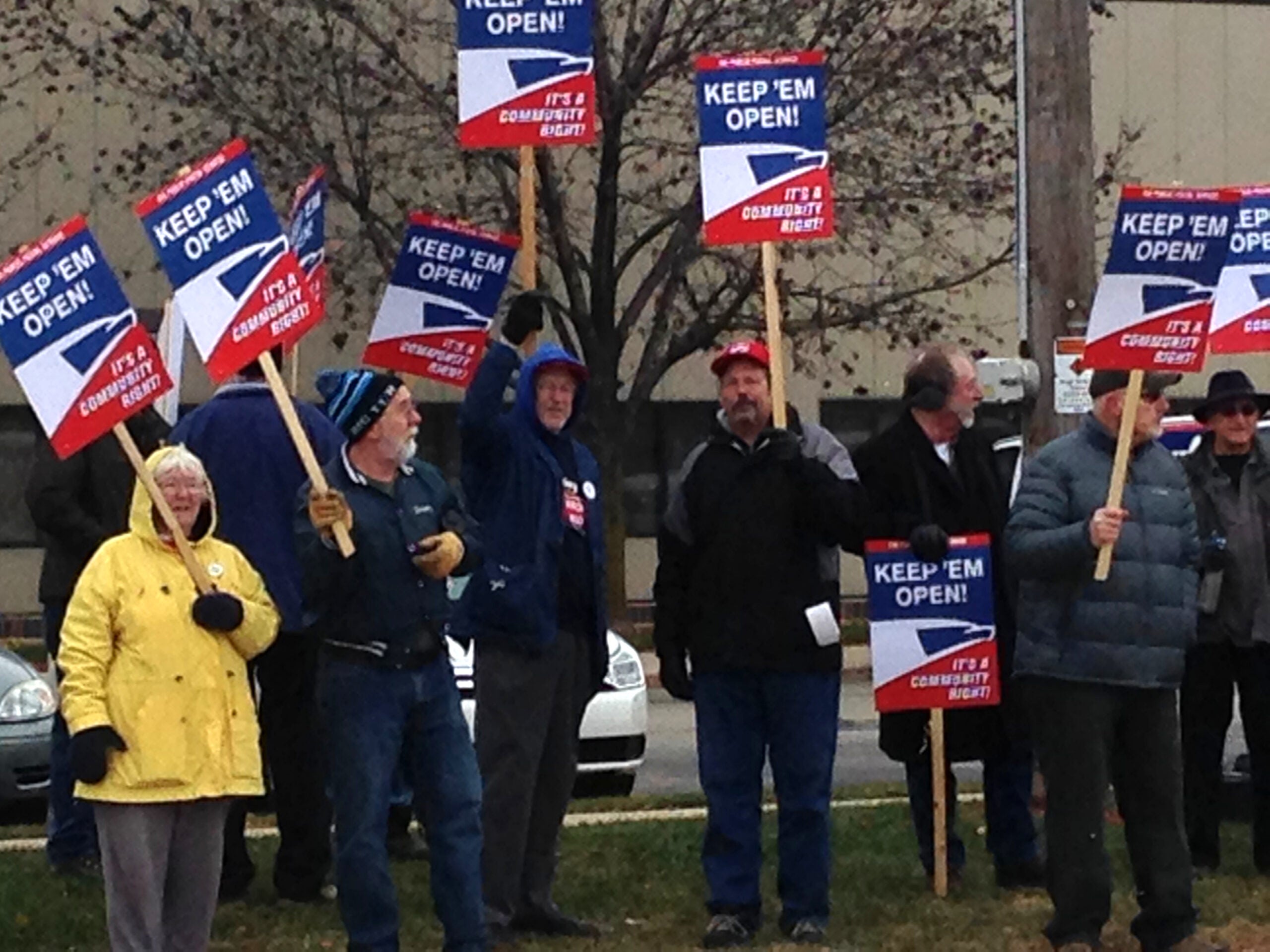 About 20 people protested in Madison. They say they aren’t worried about job cuts, but are concerned about slower mail delivery times.