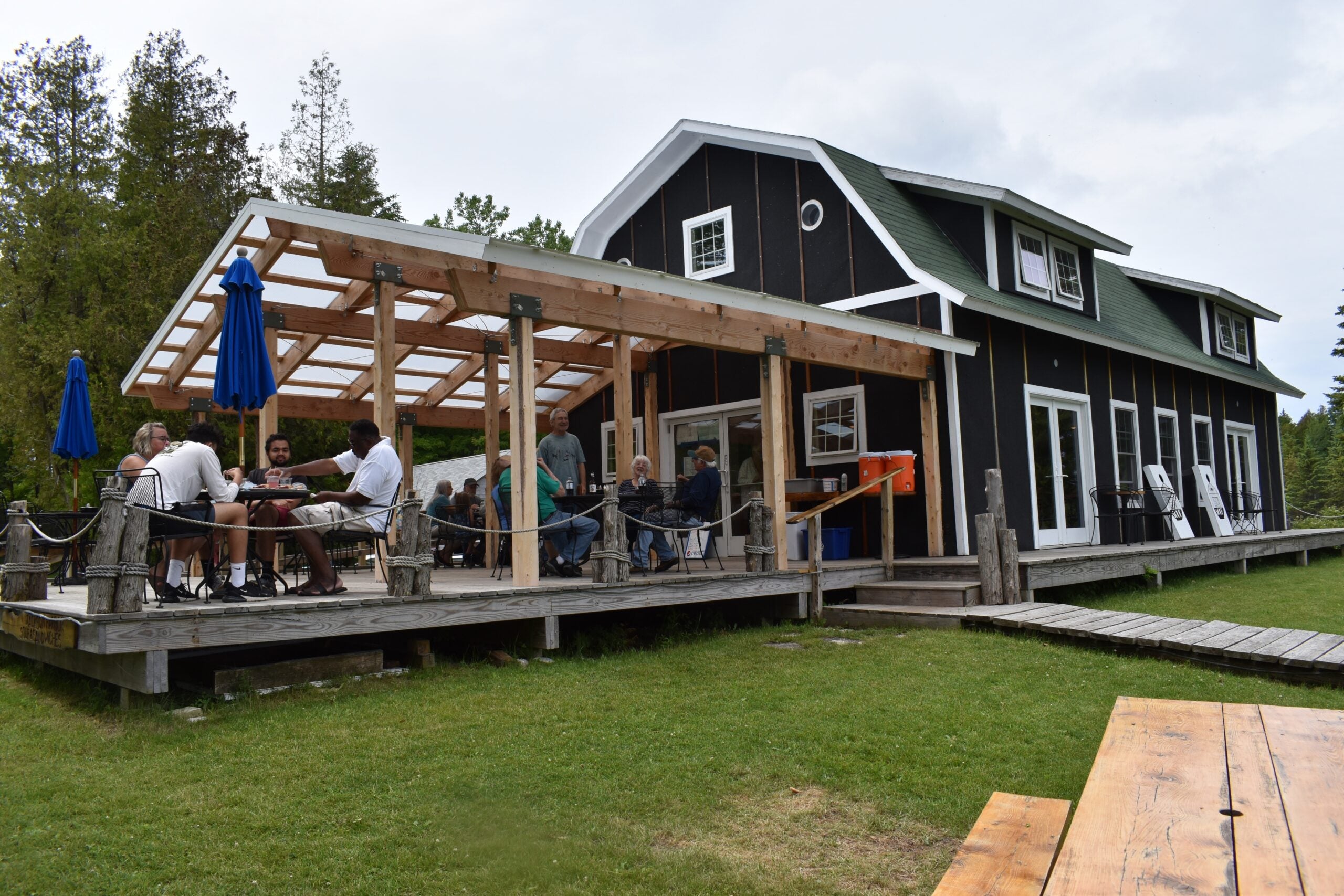 The windows at Jackson Harbor Soup and Sandwiches look out on the water and northwest to Rock Island, a state park that is still closed to visitors, and will be closed all year. There are picnic tables in the yard and al fresco dining under a sheltered patio. The restaurant has been open for five seasons. Sarah Gibson, one of the owners, said she didn’t know if they’d open at all this year.