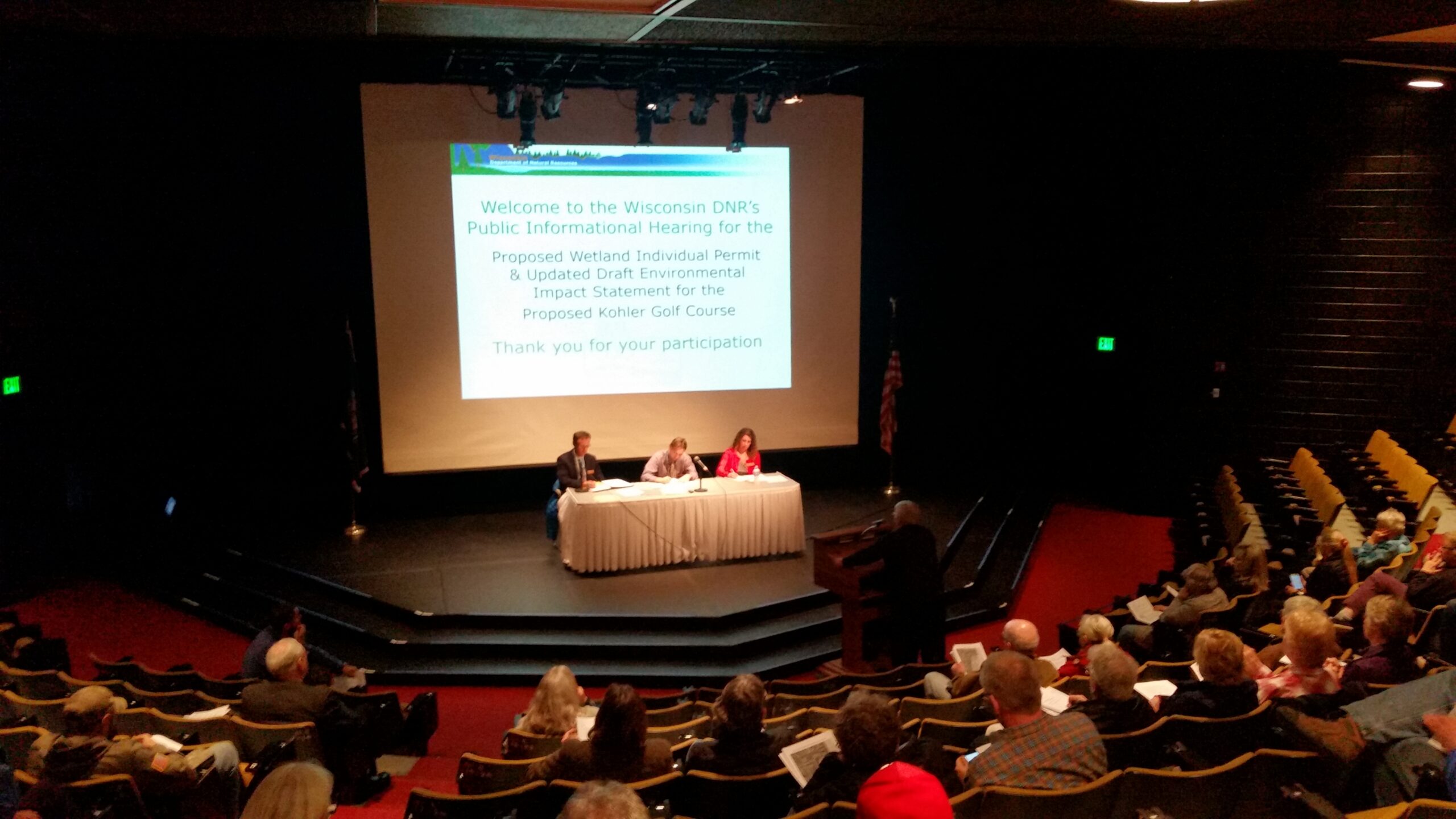 A proposed wetlands permit for a golf course that Kohler Co. officials want to build along Lake Michigan in Sheboygan drew mostly opposition at a public hearing Thursday night.