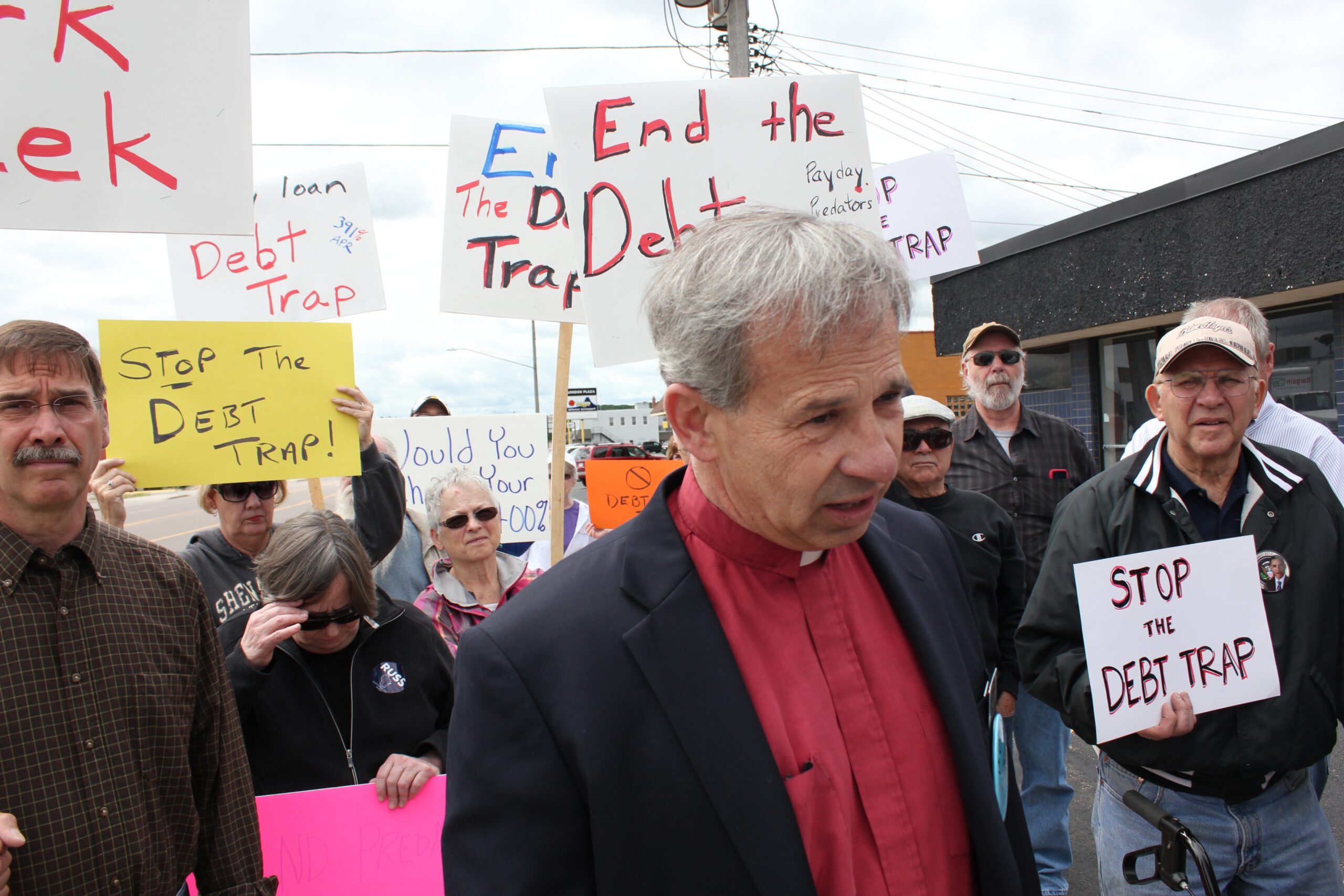 Representatives from consumer advocacy groups Citizin Action Wisconsin, WISPIRG and Eau Claire-based JONAH held a rally to support a plan from the Consumer Financial Protection Bureau that would require lenders to verify borrowers can repay loans and restrict repeated borrowing. Peter Skopec of the advocacy group WISPIRG said the payday lending model preys on the poor.