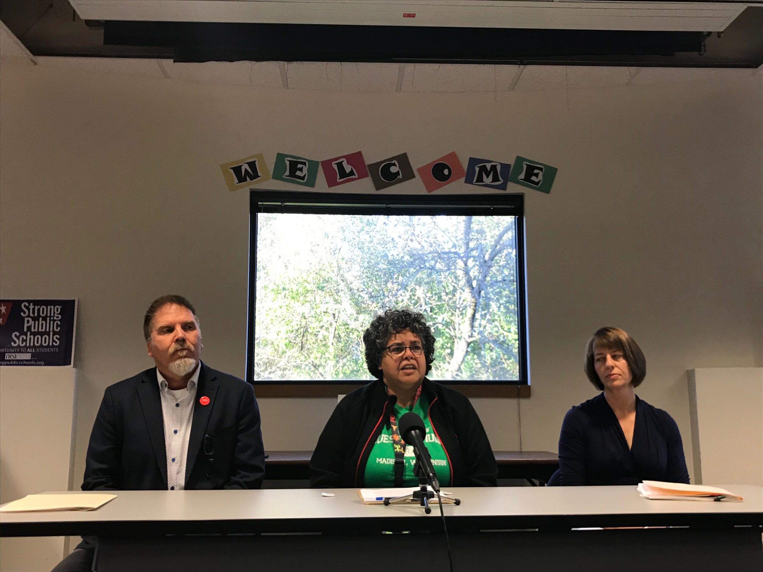 Rivera spoke at a press conference organized by Madison Teachers Inc., the local teachers’ union. She is one of two staff members that MTI is representing during their appeals for discipline under the zero-tolerance policy.