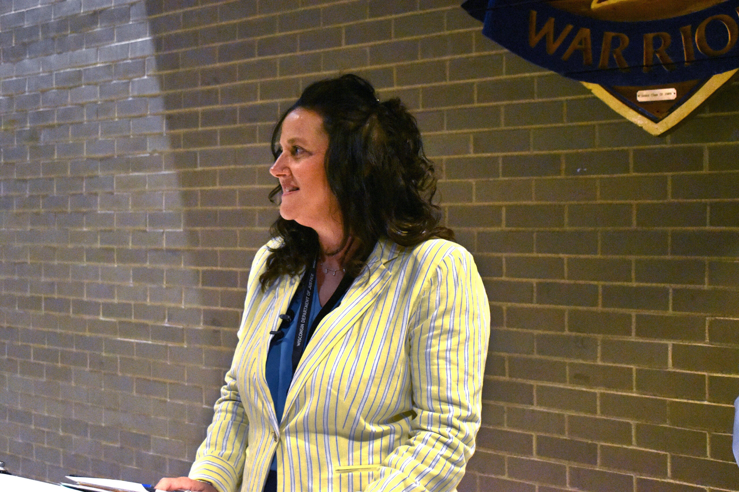 Trish Kilpin directs the state Department of Justice’s Office of School Safety, including its Speak Up, Speak Out hotline for reporting potential dangers. On Thursday, she led a violence prevention training in Wausau for several hundred teachers and other school staff from multiple central Wisconsin school districts. In a press conference at the event, she said stopping school violence is a community effort.
