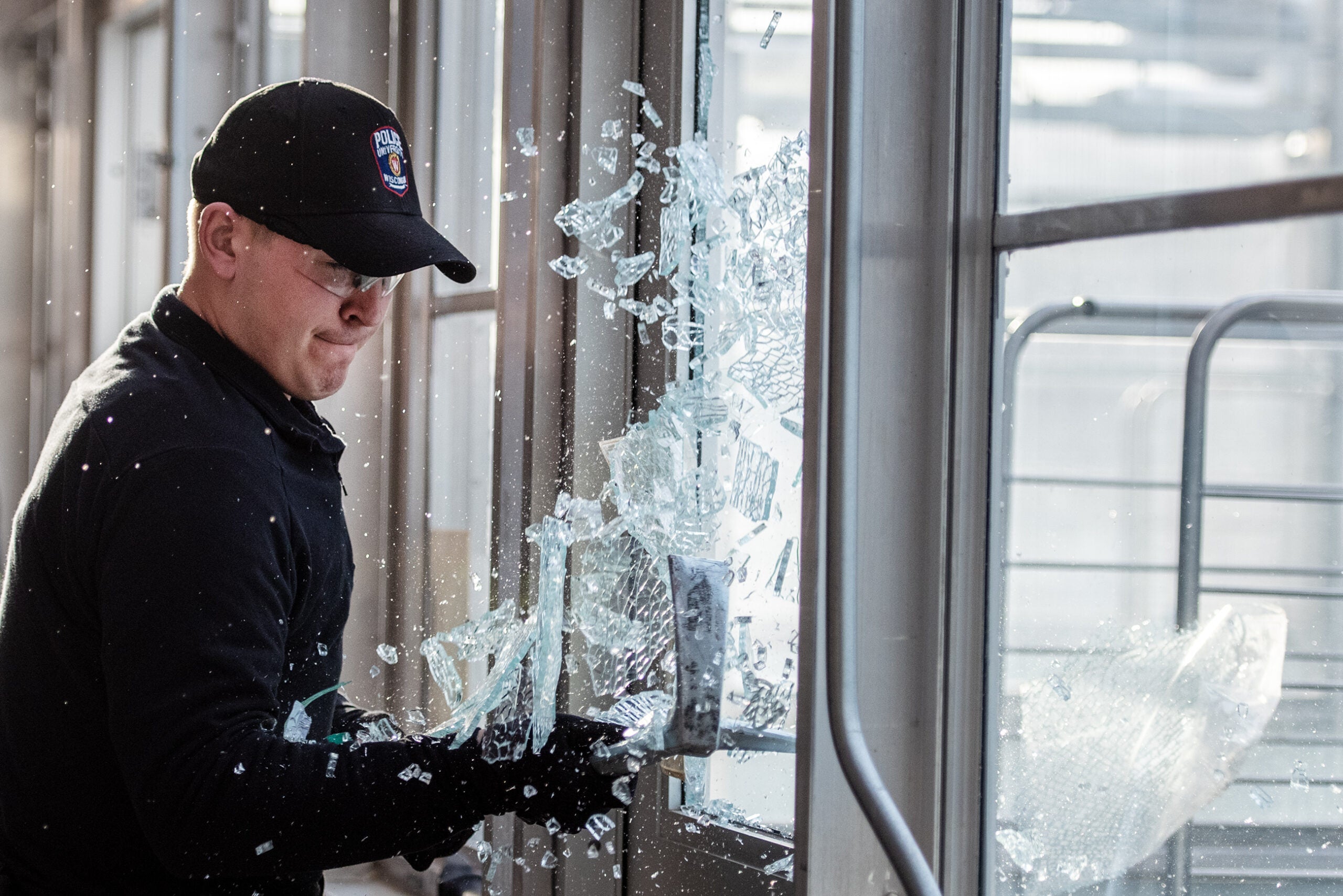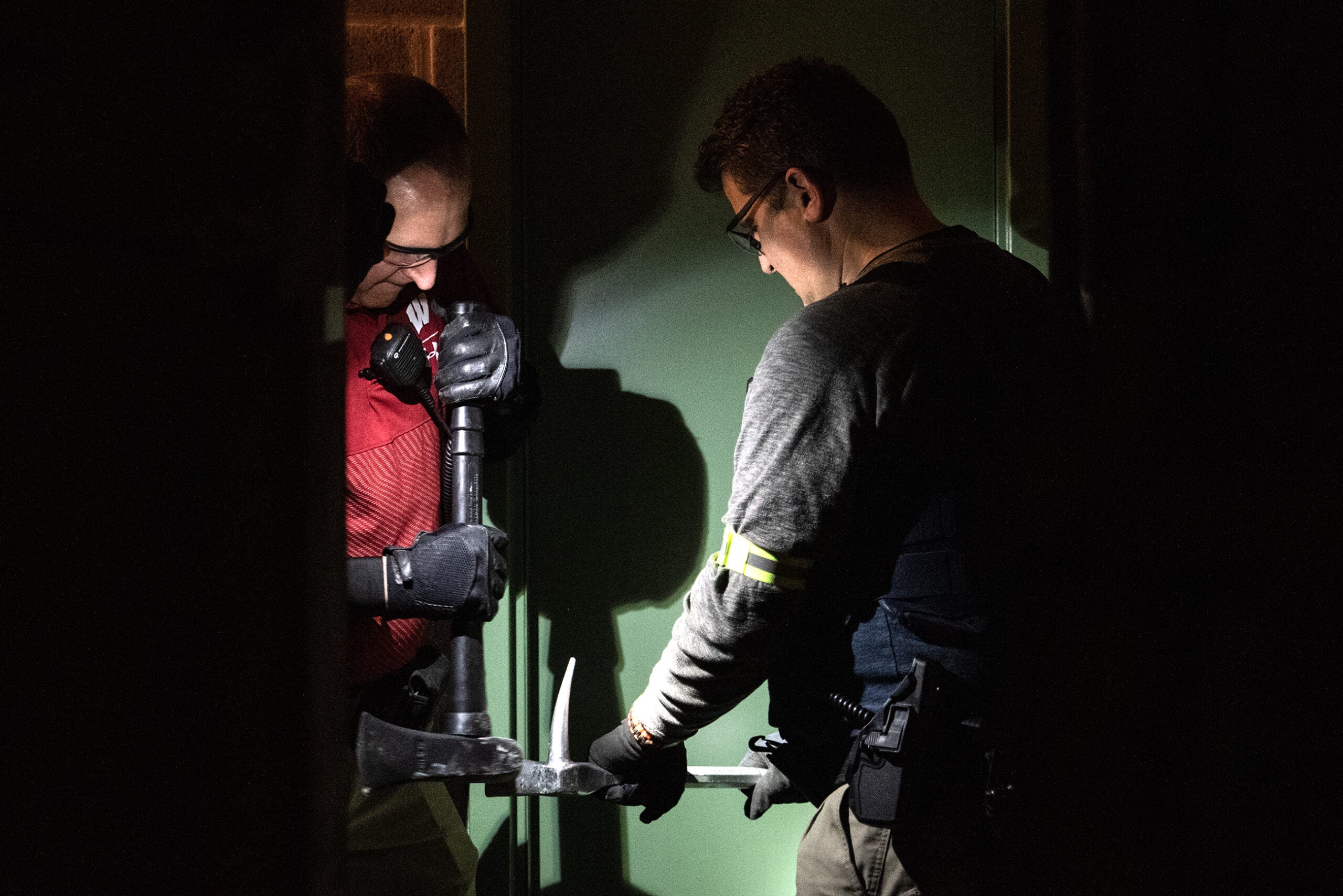 It’s eerily quiet in the vacant Biotron Laboratory building on the University of Wisconsin-Madison campus. It’s been closed for two years, but various pieces of office equipment are still scattered throughout offices and what were once state-of-the-art, climate-controlled research labs sealed with thick metal doors. That silence is about to be shattered by the UW Police Department’s annual Active Killer Training.