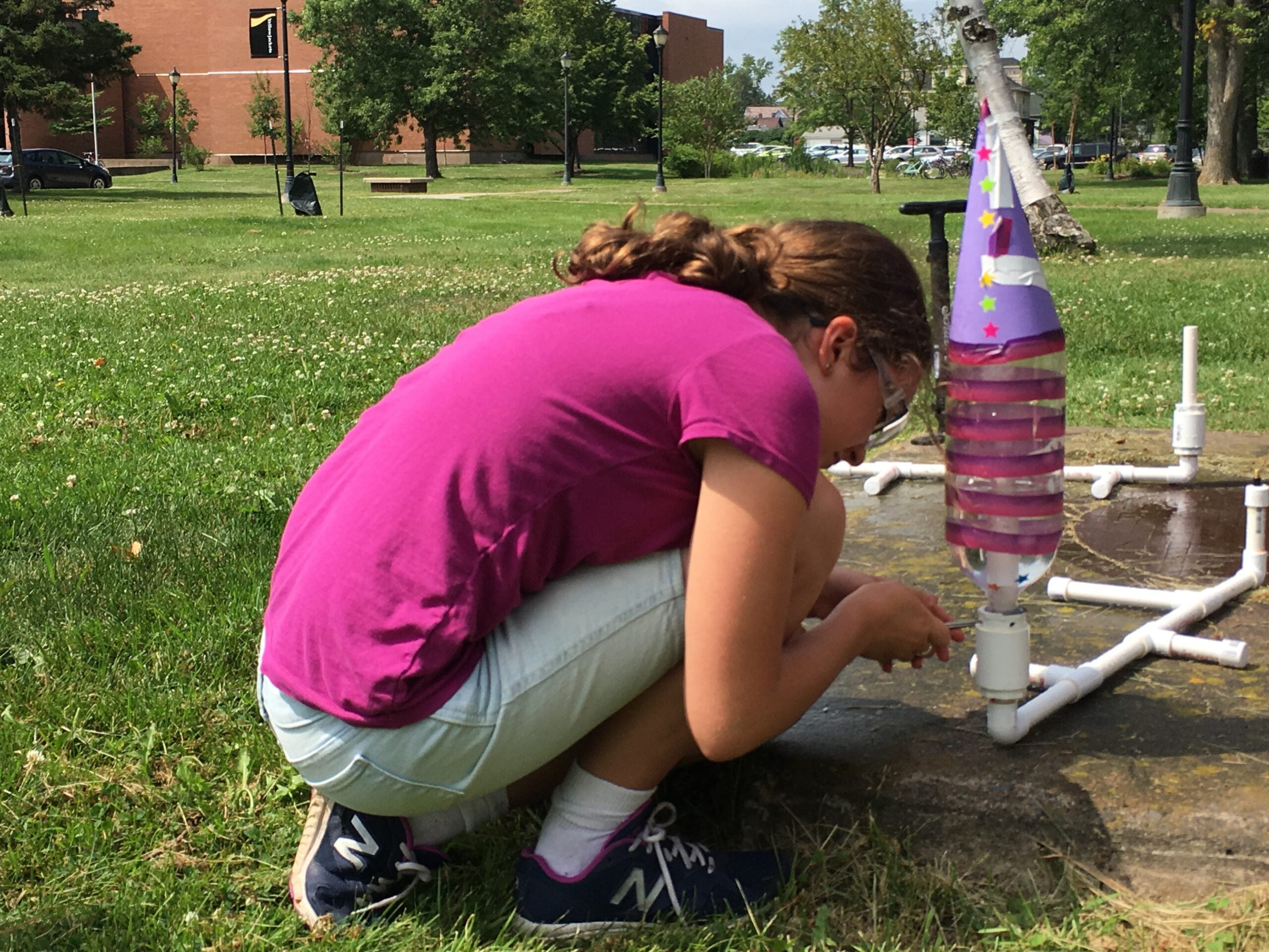 At the camp, 10 girls — including Sengenberger — were getting ready to blast off their homemade rockets. They crafted them out of two-liter pop bottles, partially filling them with water. One by one, the girls rested them carefully on a network of PVC pipe and filled them with air from a tire pump until they shot skyward.