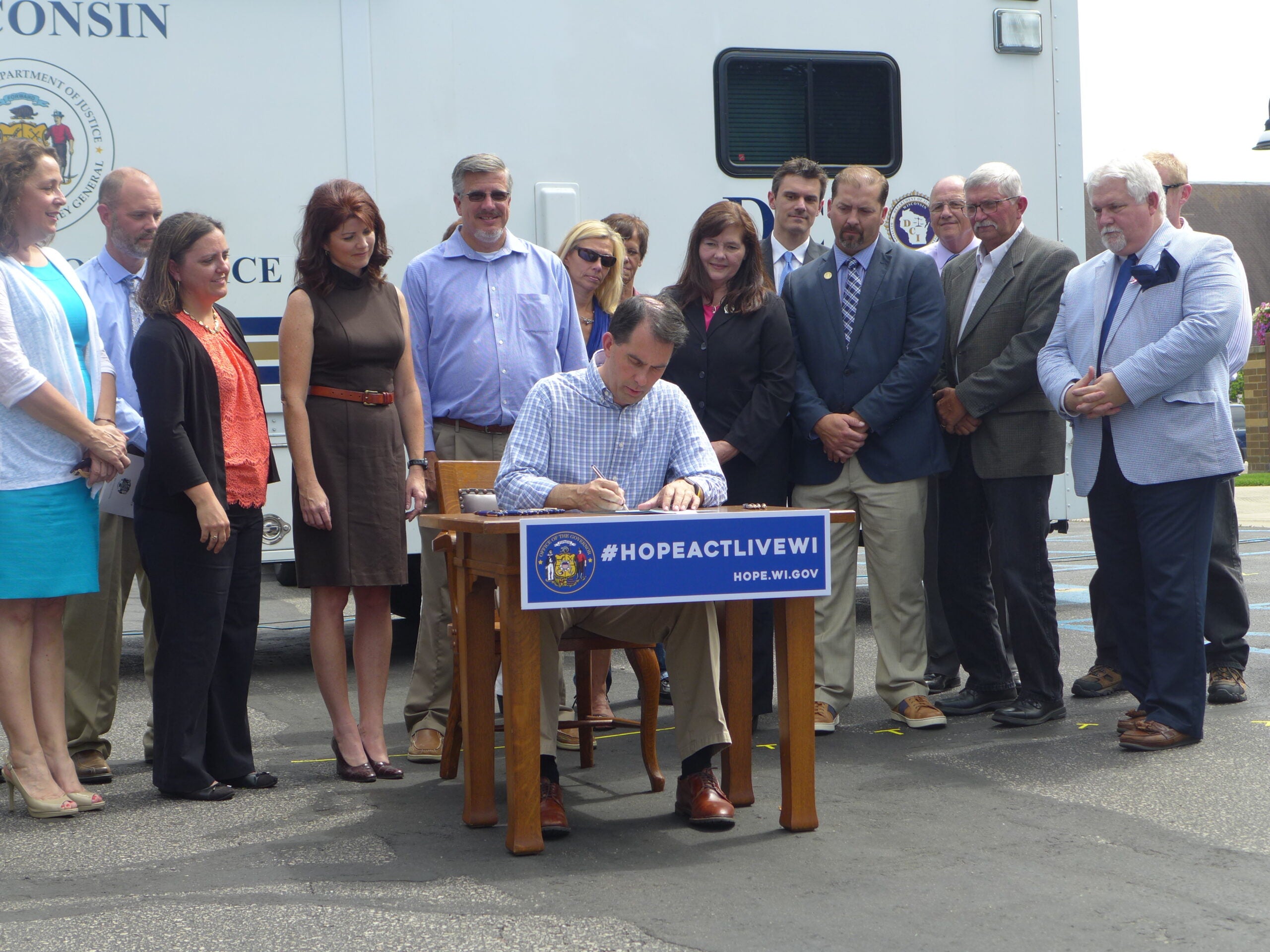 Stopping in De Pere, Schofield and Onalaska, Walker signed the latest bills in the HOPE Agenda, an effort by the Legislature to address increasing heroin and opioid abuse since 2013.