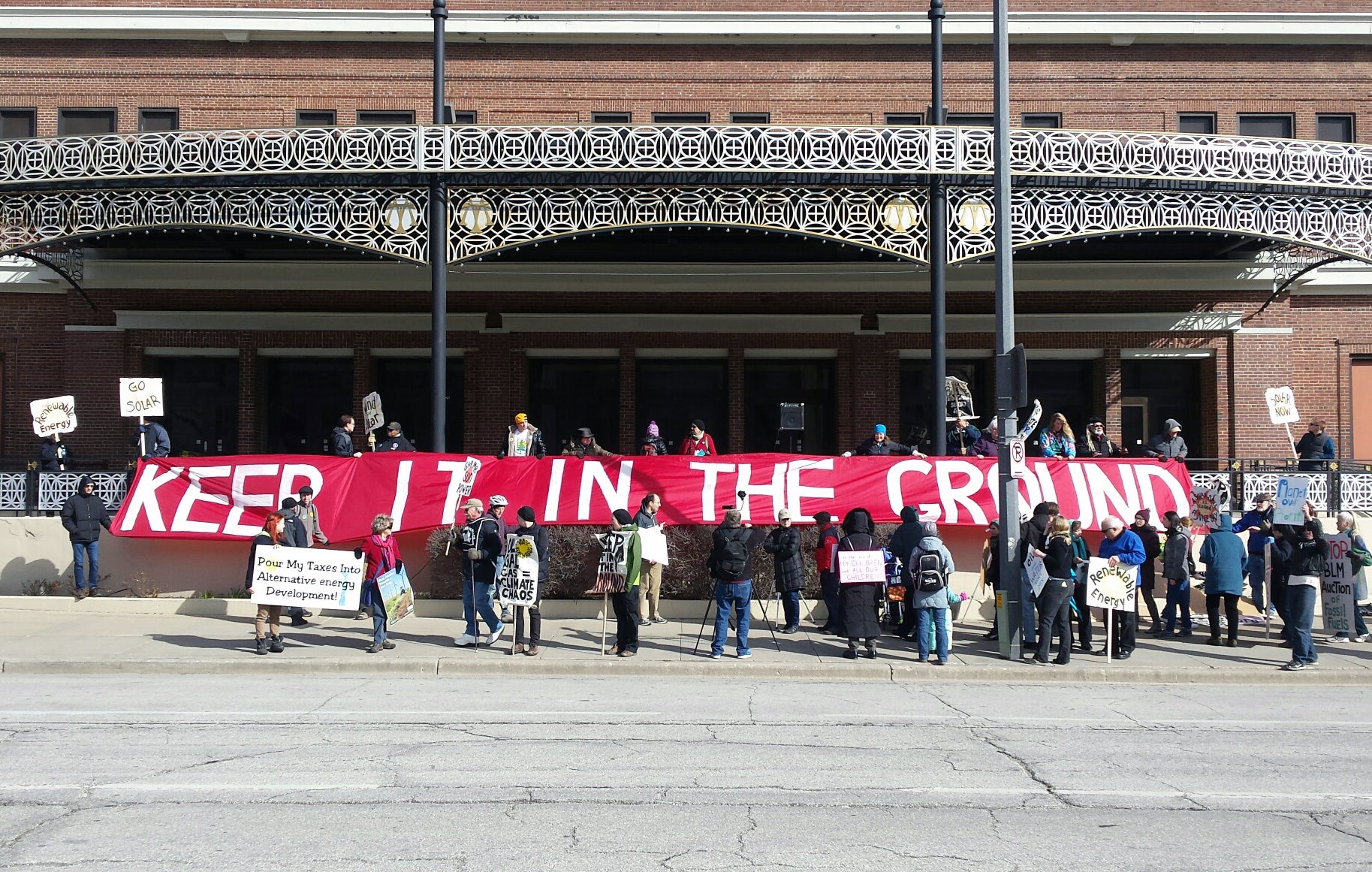 A federal auction of oil and gas leases on public lands drew about 75 climate change activists in Milwaukee Thursday.