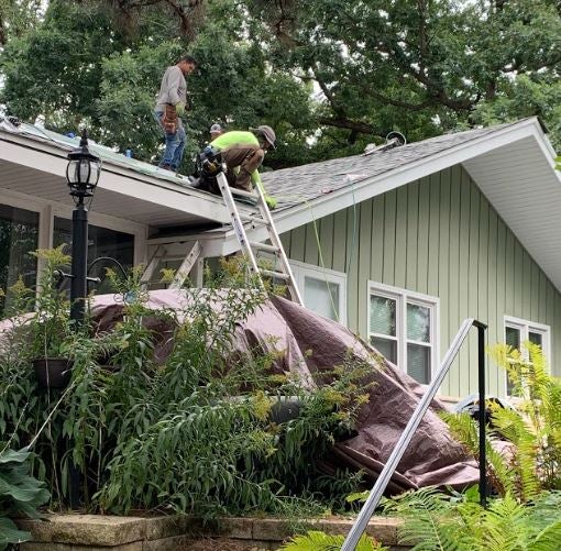 Contractors install a new roof as part of energy efficiency upgrades at the Geason-Bauer home in Nashotah. Photo courtesy of Lisa Geason-Bauer