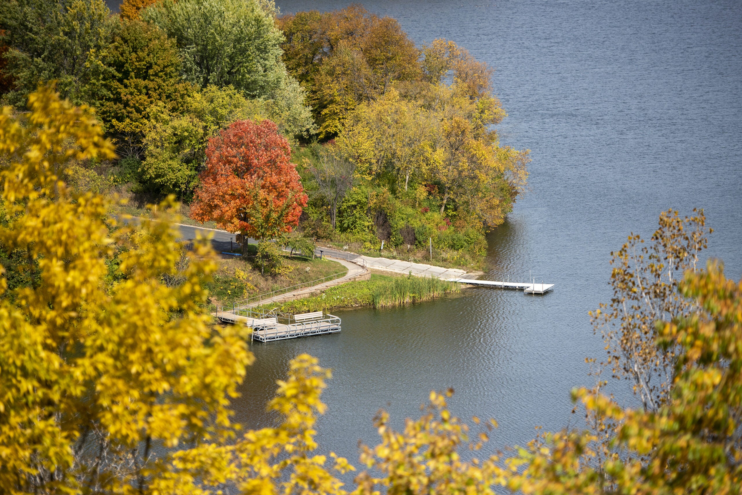 Fall colors can be seen from a lookout point above the Eau Galle Reservoir on Monday, Oct. 3, 2022, in Spring Valley, Wis. Angela Major/WPRLeaves on a tree have turned yellow with the cooler seasonal temperatures Monday, Oct. 3, 2022, near the Ice Age Trail in Saint Croix Falls, Wis. Angela Major/WPRTrees with fall colors shade a street Monday, Oct. 3, 2022, in Saint Croix Falls, Wis. Angela Major/WPRPeople stop to enjoy the fall colors Monday, Oct. 3, 2022, at the Severson Memorial Overlook Park in Saint Croix Falls. Angela Major/WPRThe view from the Severson Memorial Overlook Park in Saint Croix Falls, Wis., on Monday, Oct. 3, 2022. Angela Major/WPRThe sun shines through a tree with yellow leaves Monday, Oct. 3, 2022, near the Ice Age Trail in Saint Croix Falls, Wis. Angela Major/WPRTrees with fall colors stand tall in a Frederic, Wis., neighborhood Monday, Oct. 3, 2022. Angela Major/WPRFall colors can be seen from the shore of Coon Lake on Monday, Oct. 3, 2022, in Frederic, Wis. Angela Major/WPRGreen trees turn yellow and orange in a Frederic, Wis., neighborhood Monday, Oct. 3, 2022. Angela Major/WPRWater from Clear Lake in Siren, Wis., can be seen behind a tree with red leaves Monday, Oct. 3, 2022. Angela Major/WPRA barn in Webster, Wis., is backdropped by fall leaves Monday, Oct. 3, 2022. Angela Major/WPR