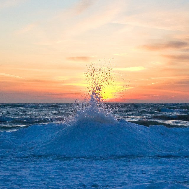 Every year, a combination of heavy waves and ice creates “ice volcanoes.” When strong waves splash up between ice shoves, or cracks in the ice near shore, the resulting spouts create volcano-lake cones.