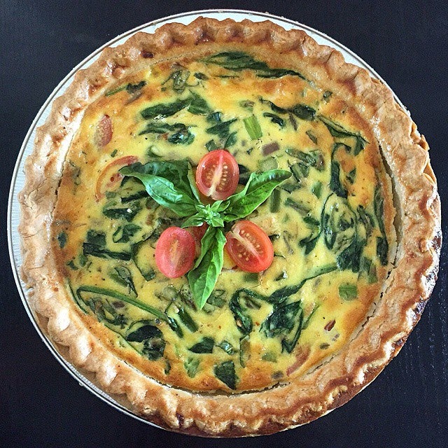 - In a food processor, combine the tofu, cheese, nutritional yeast, water, salt, pepper, and basil. Blend well and pour the tofu mixture into the pan of vegetables. Remove from stove and stir in the fresh spinach.