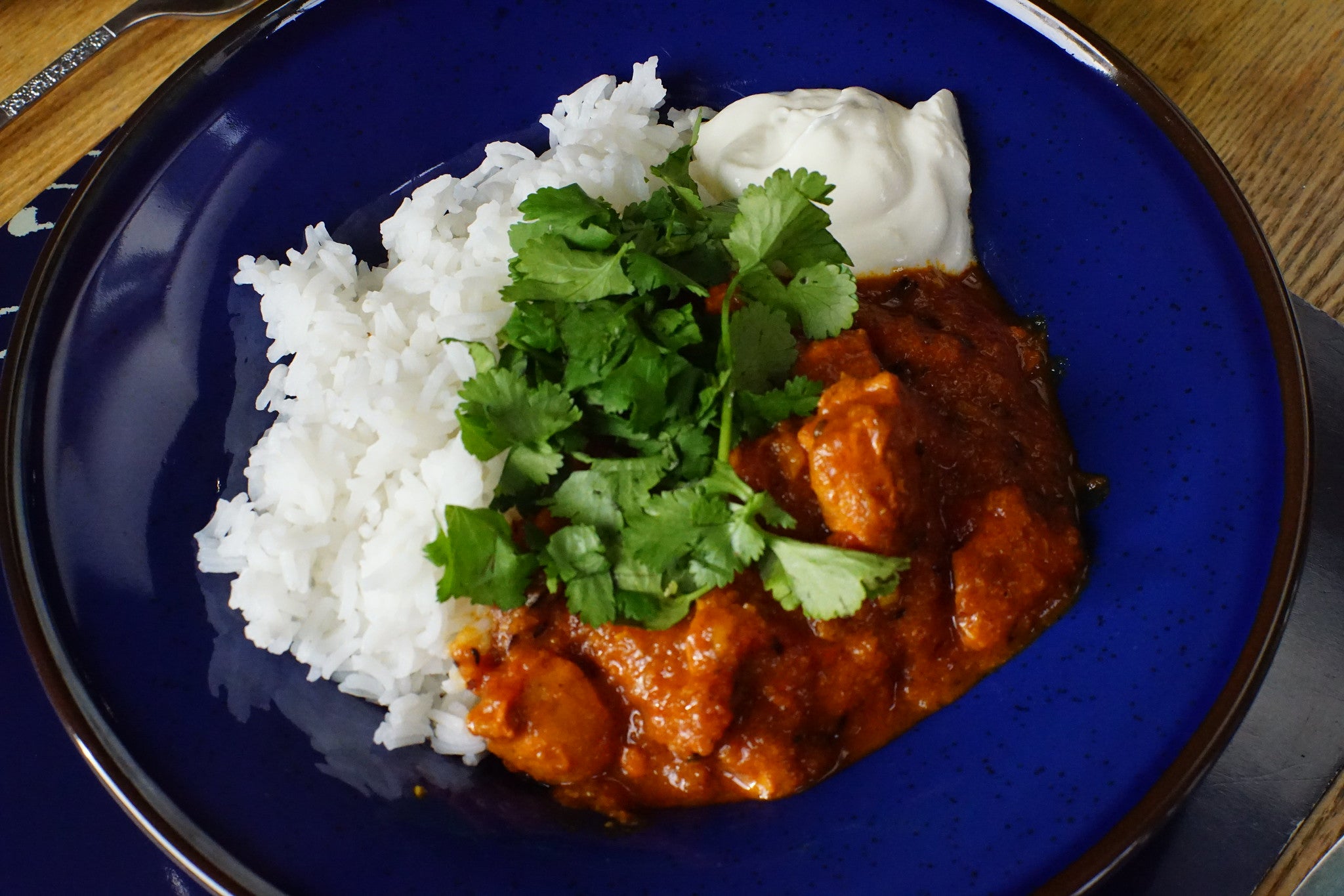 - Add the remaining tablespoon of olive oil, Add the curry powder, coriander, and rice. Sauté for 30 seconds. Quickly add the chicken broth, coconut milk, and salt.