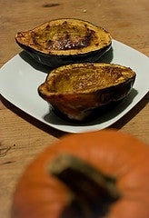 **Hold squash in one hand and carefully scoop insides out. If you didn’t break the skin of the squash, return the mixture to the skins for a delightful presentation.