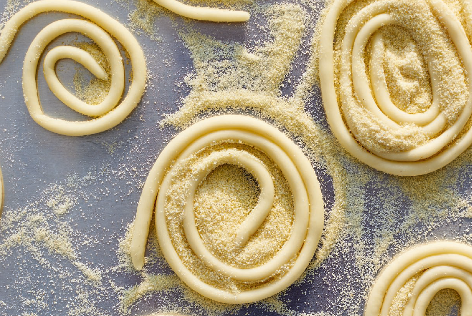 - take half handful amounts from the dough and shape it into a round saucer with your palms, known as perras
