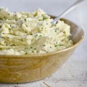 - Working in batches, if necessary, transfer the potatoes to a ricer and press them through into a serving bowl. (If you don’t have a ricer, use a potato masher and fluff them very thoroughly with a fork when completely mashed.) Pour the pepper-speckled cream over the potatoes and sprinkle with the chives. Fold together with a spatula just until the liquid is incorporated. Don’t overmix it.