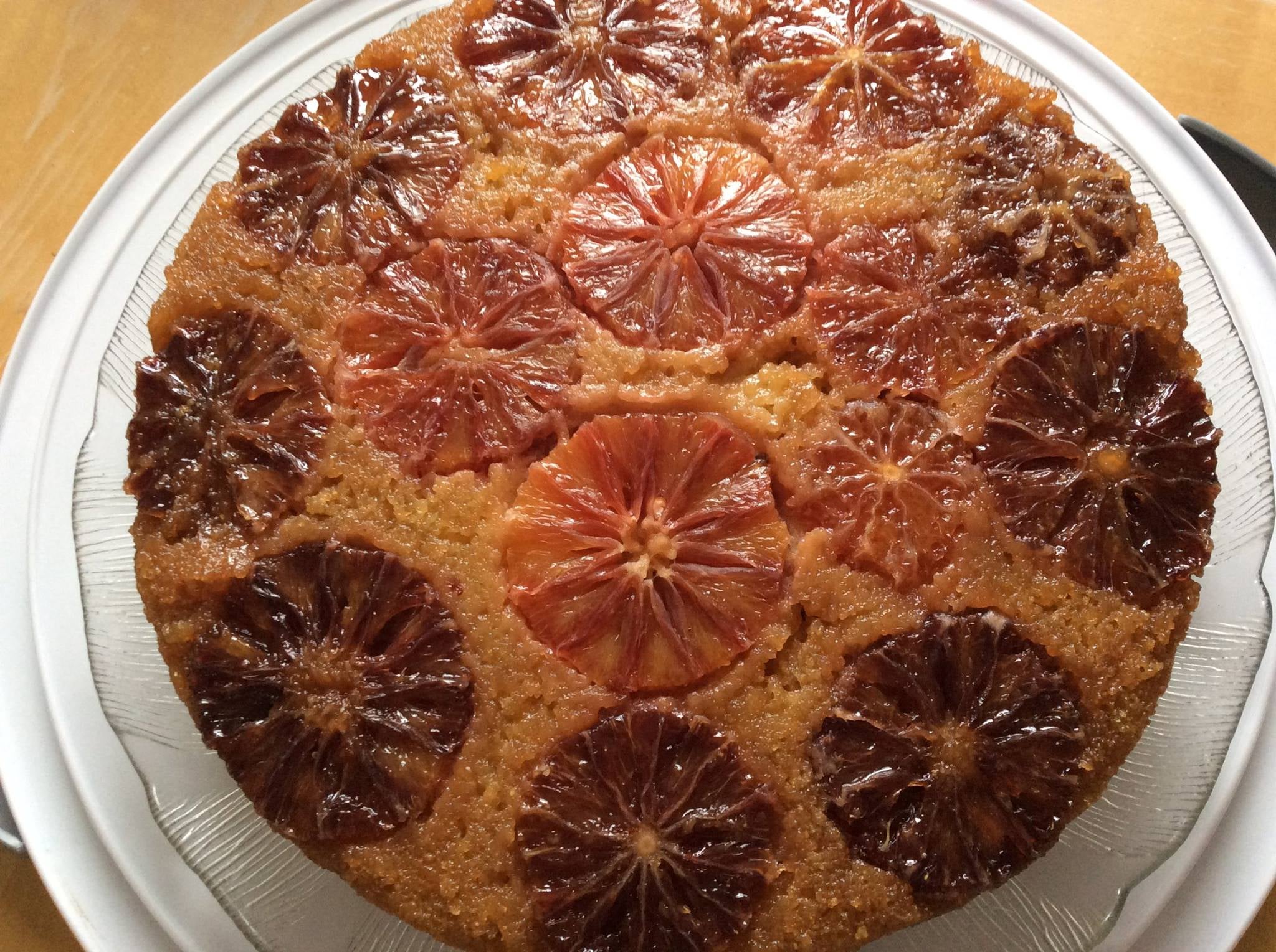 - Scrape batter into pan over oranges. Transfer to oven and bake until cake is golden brown and a toothpick inserted in the center emerges clean, 40 to 50 minutes. Cool cake in pan 10 minutes, then run a knife along pan’s edges to loosen it; invert onto a platter and cool completely before serving.