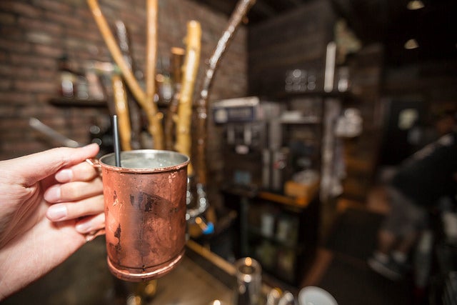 Now, I know you mixologists are seeing where I’m going with this monumental question that’s on everyone’s lips. And you guys already know the answer. When drinking that Moscow mule, use a copper cup that has an aluminum coating on the inside — which, by the way, has been the case in all the copper cups I’ve seen.
