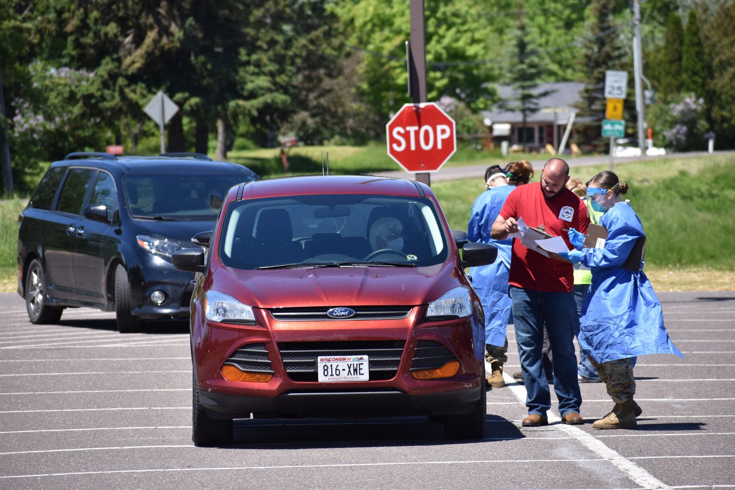 Larry and Alice Deragon waited in line for about an hour to get tested for the coronavirus at a drive-thru testing event in Red Cliff. The two are members of the Red Cliff Band of Lake Superior Chippewa, and they live just outside the reservation.
