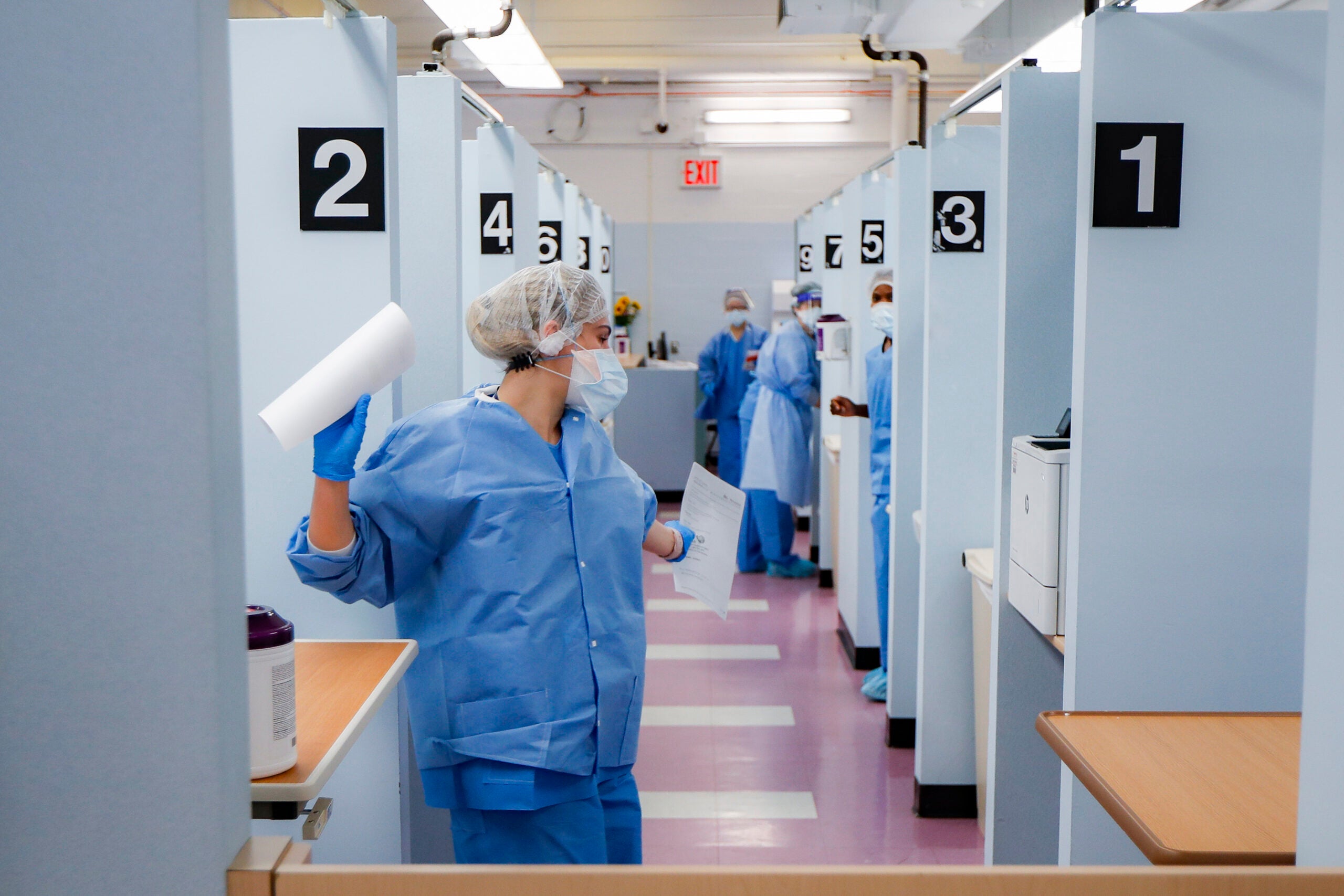 Medical personnel work in the COVID-19 medical screening annex at NYC Health Hospitals Metropolitan, Wednesday, May 27, 2020, in New York. John Minchillo/AP Photos