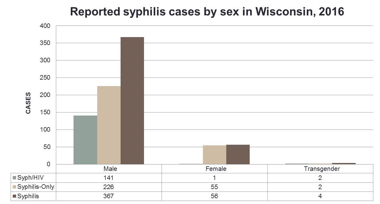 The number of reported syphilis cases in Wisconsin increased dramatically in 2016, according to a state Department of Health Services report. In Wisconsin, syphilis infections went from 270 in 2015 to 427 in 2016.