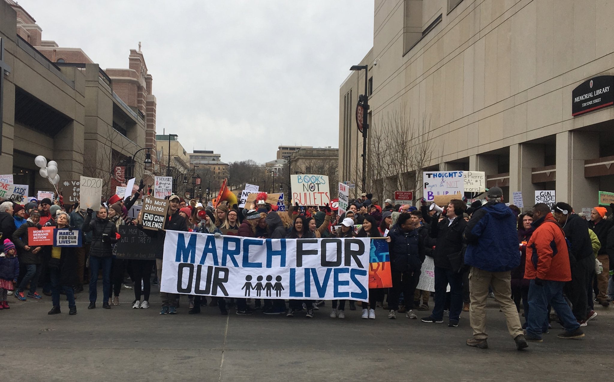 Madison’s event started at Library Mall on the University of Wisconsin-Madison’s campus. Participants marched up State Street to the Capitol, where students, teachers, and politicians spoke about the need for gun reform. The Madison Police Department estimate about 2,500 participated on Saturday.