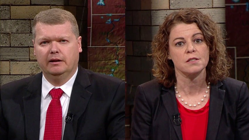 Butler, top, and Gableman during a 2008 WPT debate. Wisconsin Public Television