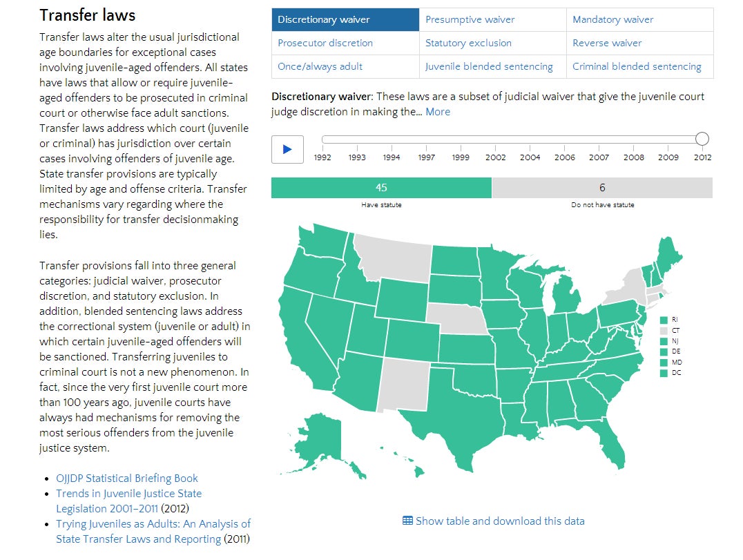 The National Center for Juvenile Justice has launched a new interactive website that tracks regional and national trends in the laws and policies for dealing with young offenders.
