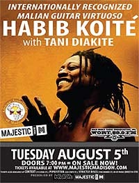 Koite appeared at the Majestic Theatre in Madison, Wisconsin on Tuesday, August 5, 2008 .