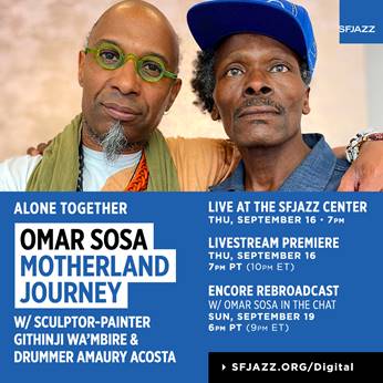 Three months after Cuban pianist Omar Sosa’s historic solo concert that marked the first public event at SFJAZZ since March 2020 and was called “a momentous occasion” by The San Francisco Chronicle, celebrated Cuban pianist Omar Sosa returns with the world premiere of Motherland Journey, a wildly innovative multimedia happening performed in collaboration with Kenyan-born visual artist Githinji Wa’Mbire and drummer Amaury Acosta that will employ SFJAZZ’s advanced new stage lighting and projection system for the first time.