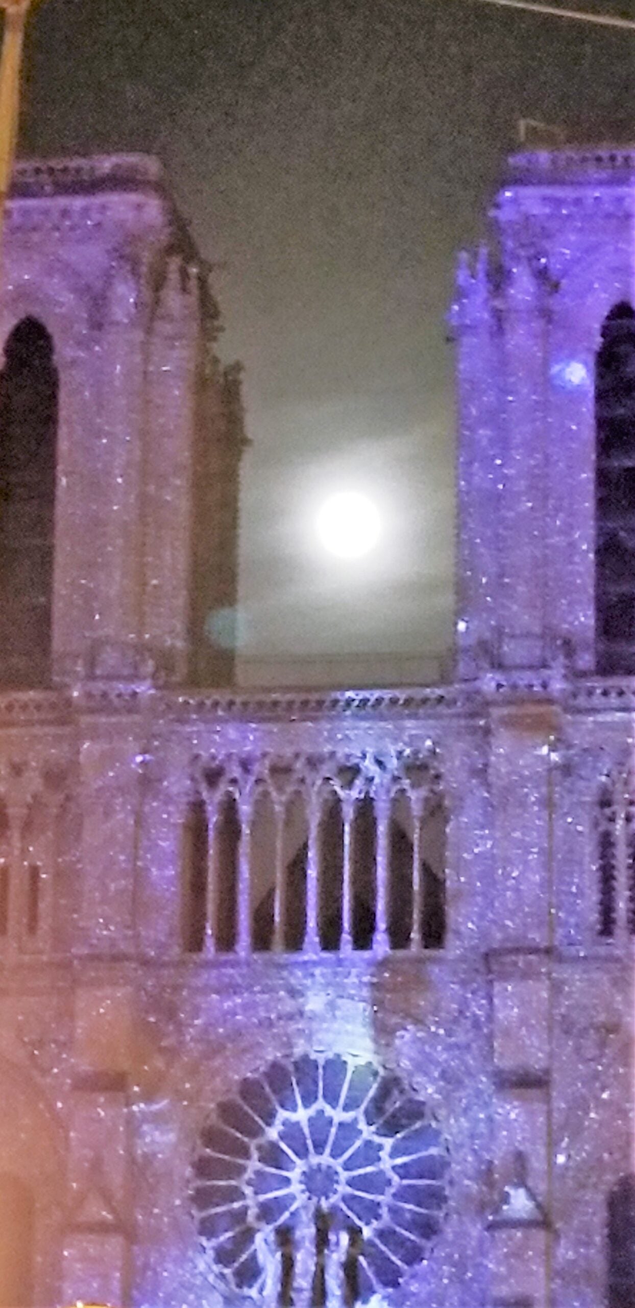 Below is a photo I took last October. As the full moon rose, a sea of blue and silver stars were projected onto the cathedral.