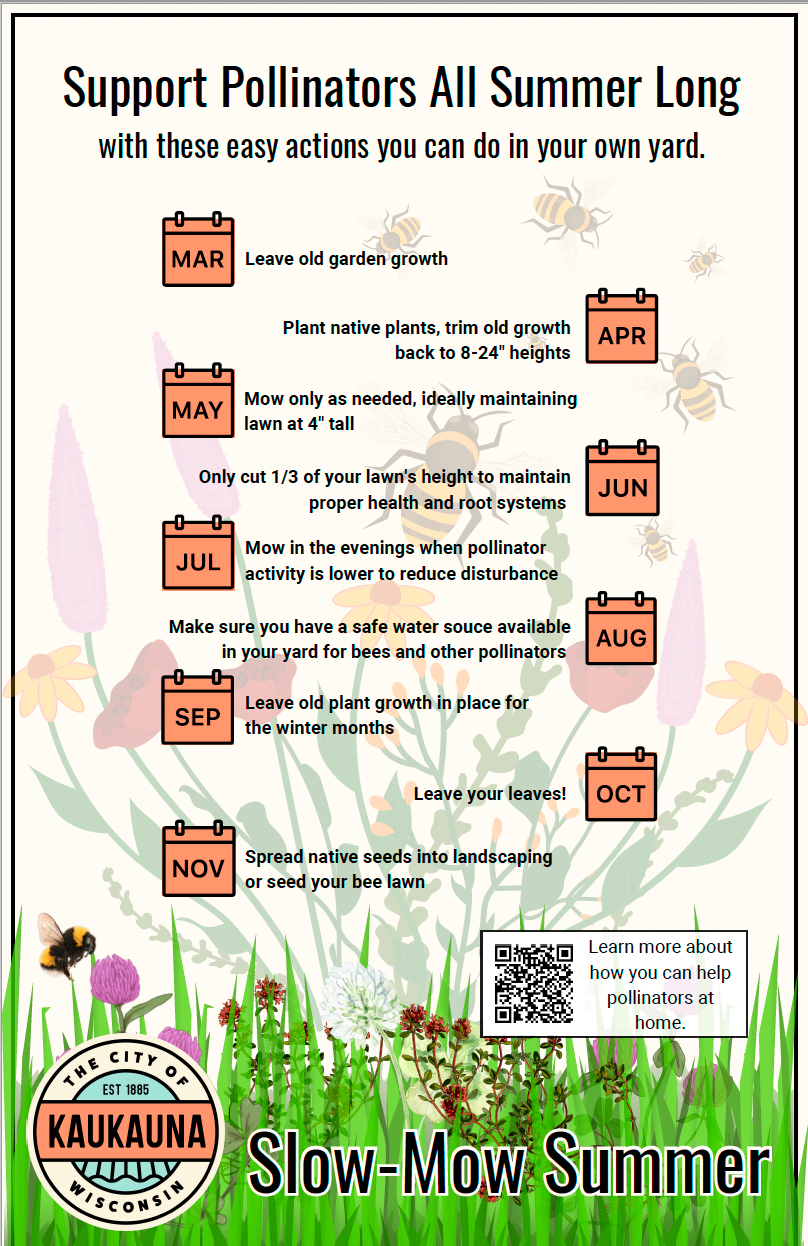 The City of Kaukauna had the No-Mow May policy for two years before ending it last March. This is the city’s second season with a Slow-Mow Summer approach, something Appleton is promoting, as well.