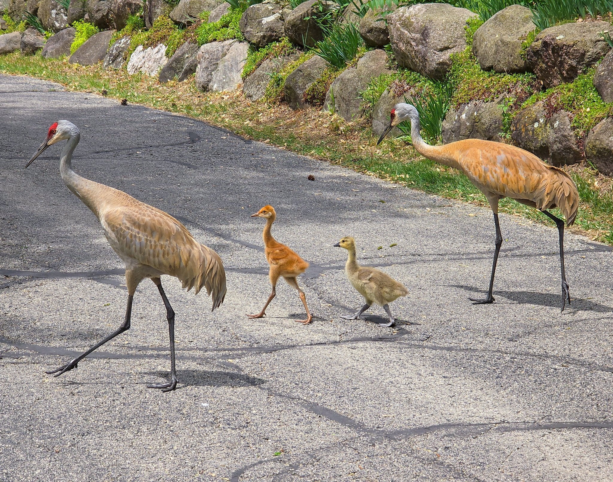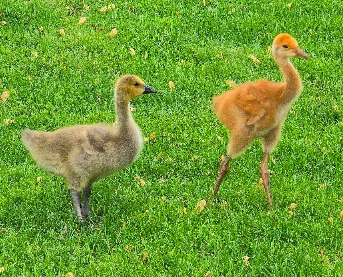 “All of a sudden, we had the rather strange sight here of a sandhill crane mother with two chicks, one being a Canada gosling and the other one being a sandhill crane colt,” Ginsberg said.