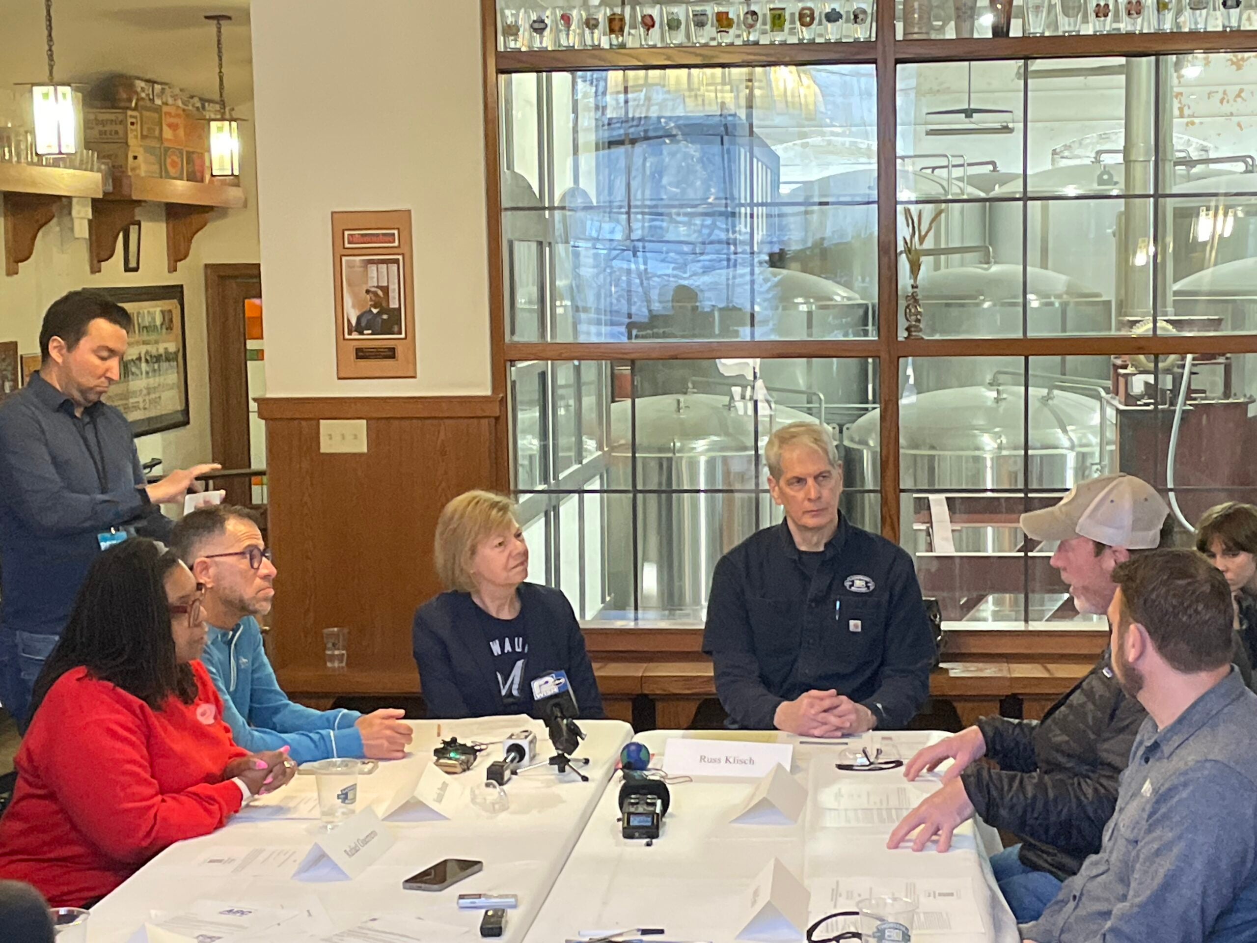 A brewery on the banks of the Milwaukee River hosted a roundtable discussion between tool distributors, farmers, roofers, craft brewers and U.S. Sen. Tammy Baldwin on Monday.
