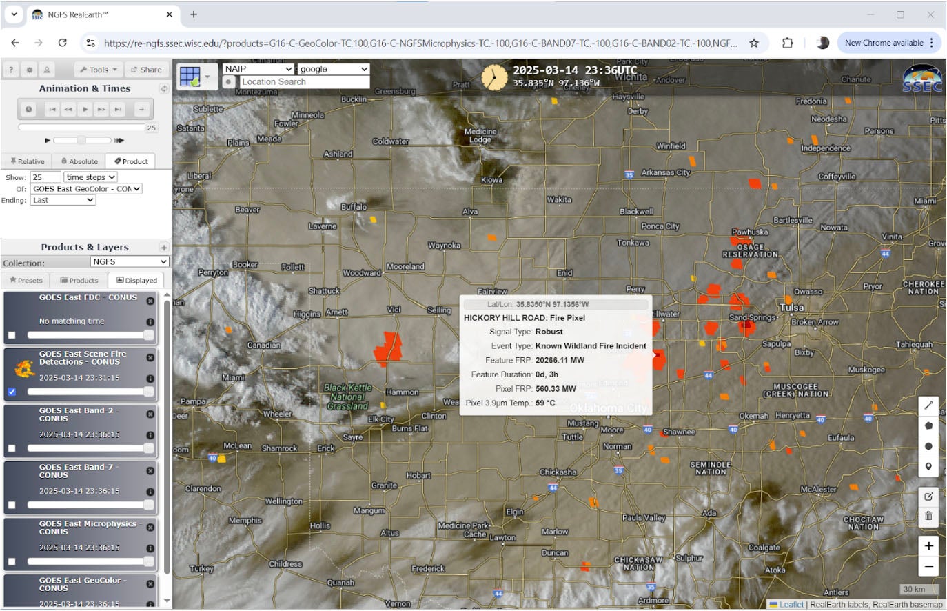 Todd Lindley is the science and operations officer with the National Weather Service forecast office in Norman, Oklahoma. He said NOAA satellites and the system detected 19 fires in a March wildfire outbreak that allowed forecasters to notify first responders before 911 calls came in.